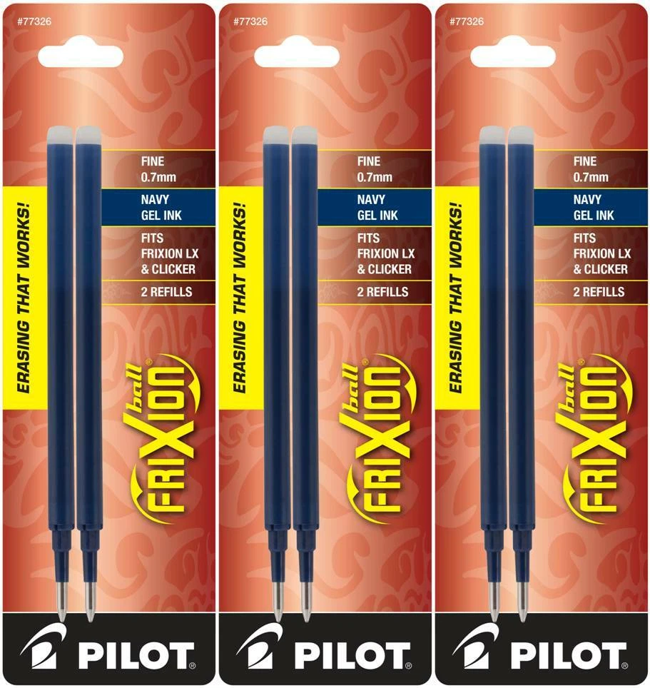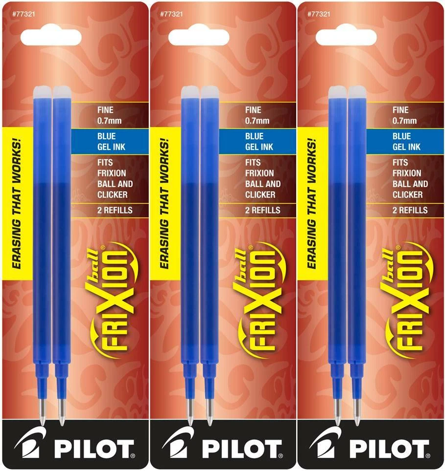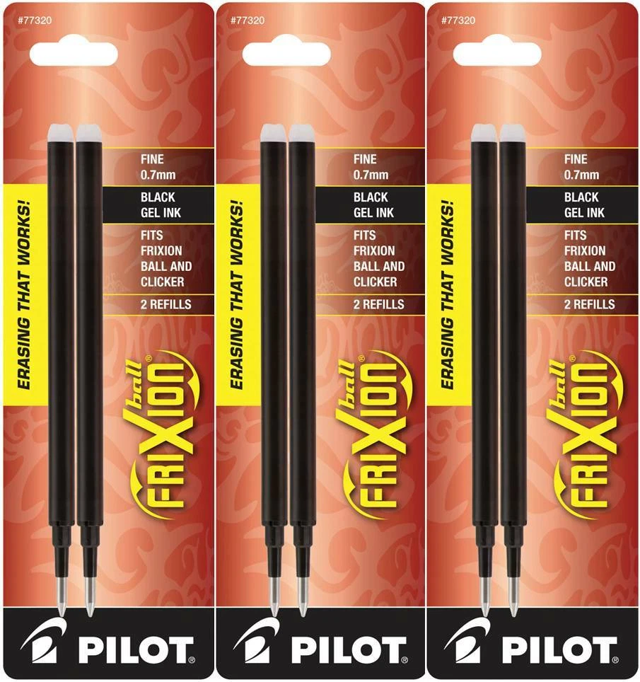 Pilot FriXion Ball Erasable Gel Ink Refills, Fine Point, 3 Packs of 2 Refills