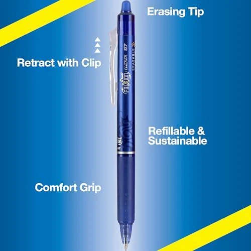 Writes smooth, erases clean for a ; writing experience. Ideal for the business professional perfect for making drafts, edits, lists and notes. Vibrant, erasable Fruition gel ink now retractable, with clip-action retraction and pen top eraser. Erase and rewrite repeatedly without damaging documents no wear or tear. PILOT FRIXION CLICKER: This pen combines the ease of a retractable pen with Pilot's erasable thermo-sensitive gel ink. No wear or tear so you can erase & rewrite until it's right without ruining the page. ERASABLE, RETRACTABLE, REFILLABLE: The FriXion gel ink pen writes smooth & erases clean. Available in a variety of vibrant ink colors: black, blue, red, turquoise, purple, navy, pink, & green. WRITE & CREATE FEARLESSLY: If you love FriXion erasable ink pens & markers, you'll want to try Pilot's full line of erasable Clickers, ColorSticks, Fineliners, Colors Marker Pens, & Highlighters. TRUSTED QUALITY: We've been making pens for over 100 years. Whether you're taking notes, stocking up on school or office supplies, or writing in a bullet journal, Pilot has the perfect pen for you POWER TO THE PEN: Pilot makes exceptional writing instruments to suit all your needs. We have fountain, ballpoint, retractable, erasable & gel ink pens, whiteboard markers & more for every writing style.