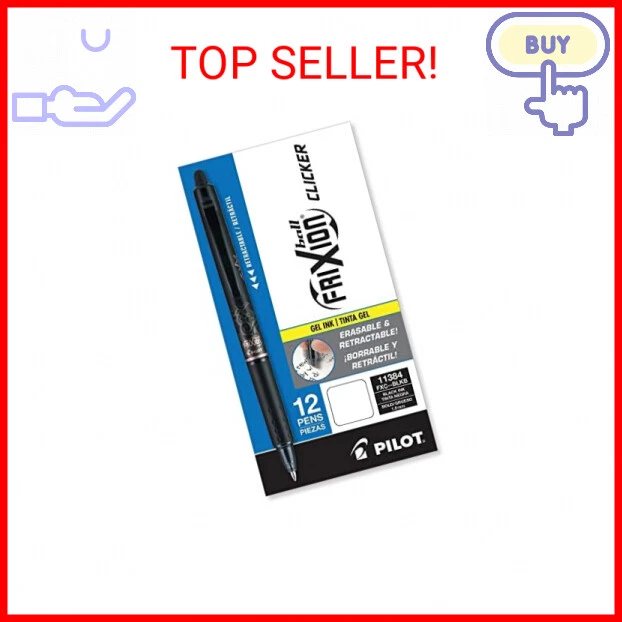 Pilot, FriXion Clicker Erasable Gel Pens, Bold Point 1 mm, Pack of 12, Black - Stress-Free Writing: Write, erase and rewrite repeatedly without damaging your documents; Unique vibrant and smooth-flowing thermo-sensitive ink disappears completely with erasing friction - Convenient Design: An innovative mechanism allows you to retract the pen tip with a single click; The soft rubberized grip delivers a comfortable writing experience - Versatile: Perfect for everyday writing tasks such as taking notes and jotting down grocery lists; Works great for creative projects, including coloring, scrapbooking, sketching, drawing and journaling - Refillable & Quick Drying: Save money and reduce waste by refilling your pen with Pilot FriXion refills (sold separately); Quick drying ink helps prevent smudges and smears - Power to the Pen: Express yourself effortlessly with Pilot's line of innovative writing tools, including gel ink, erasable, rolling ball, ballpoint and fountain pens, & dry erase markers & more Payments We accept the following payment methods PayPal Support Our dedicated customer support team is here to assist you from 9AM to 5PM Monday through Friday, excluding public holidays. Should you reach out to us and not recieve an immediate response, it's likely due to a higher-than-usual volume of inquires. We want to reassure you that your concerns are important to us, and we're working dilligently to get back to you. Expect a response by the next business day at the latest. Your understanding and patience are greatly valued as we strive to provide you with the best support possible! Shipping All orders are processed within 5 business days. Shipping estimates may be shown on this listing by eBay, and these are often not an accurate reflection of our shipping times. If we are experiencing a high volume of orders, shipments may be delayed by a few days. Please allow additional days in transit for delivery. If there will be a significant delay in shipment of your order, we will contact you via message. Shipping rates & delivery estimates Shipping is often free, but if charges for your order apply they will be calculated and displayed at checkout.