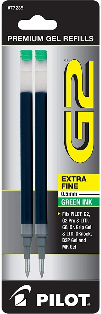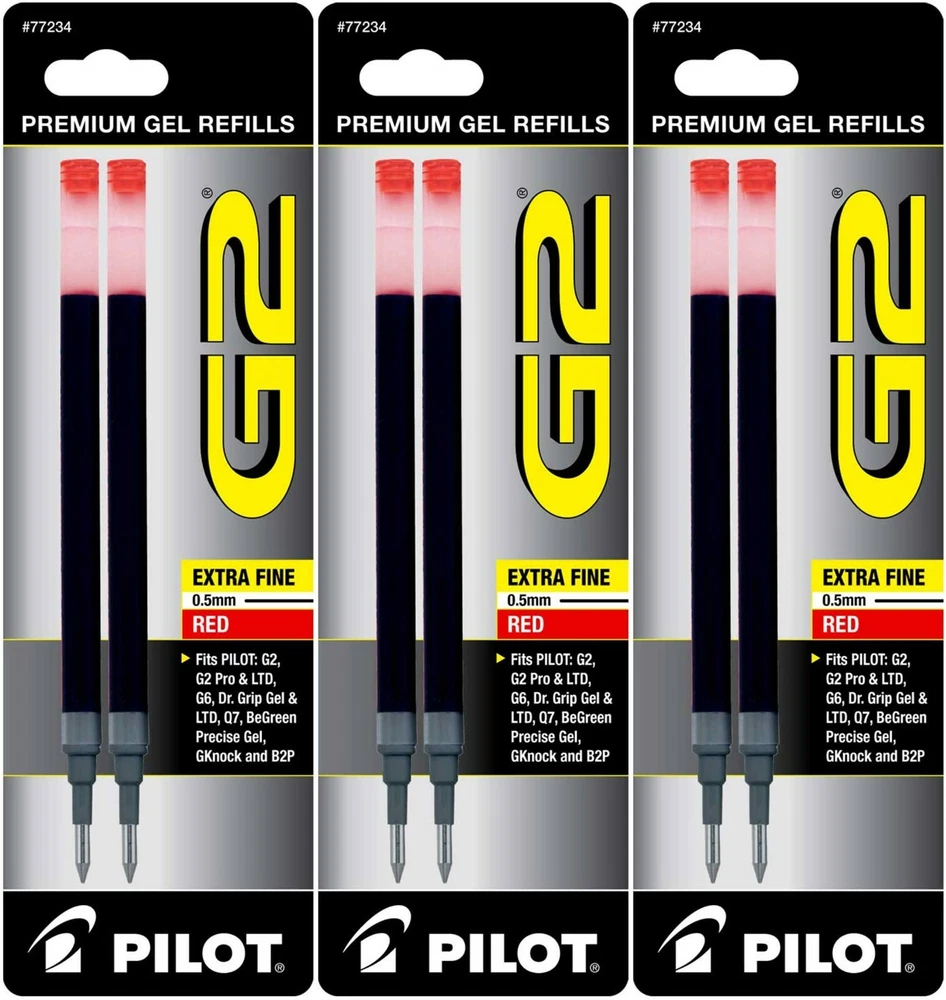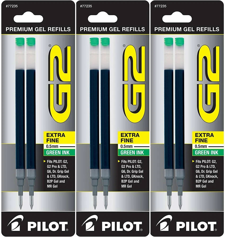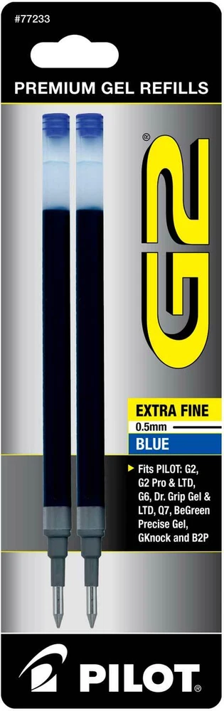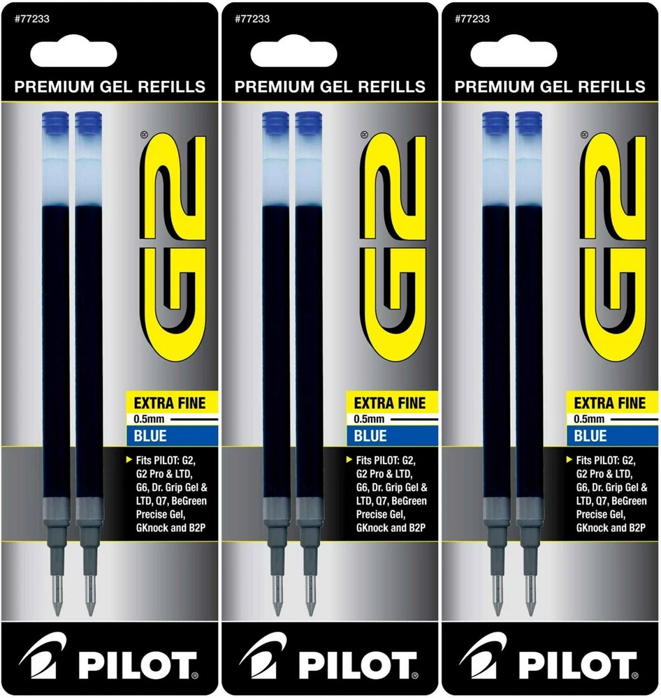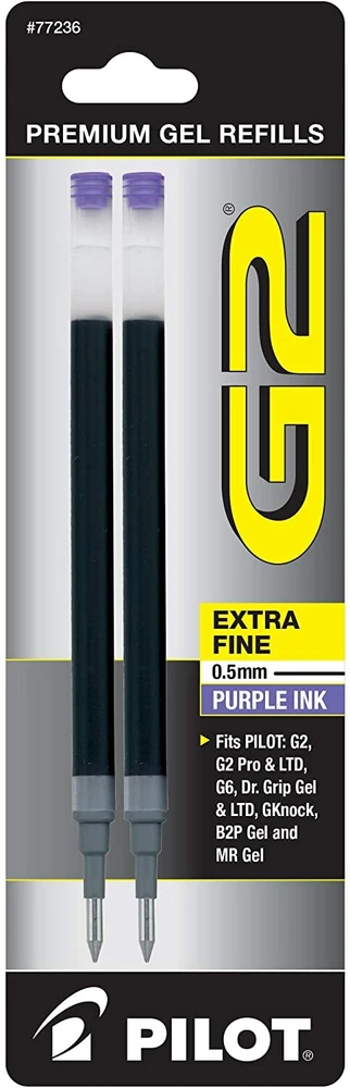 Pilot's high quality refills and accessories extend the life of Pilot products, creating ultimate value; an economic and environmentally-friendly option. Point Type: Extra Fine 0.5mm Super-smooth writing Long lasting Smear-proof 5 colors available for extra fine point size Each pack includes 2 refills. Sold as set of 3 Packs. Refill fits the following pens: G2, G2 Fashion Collection, G2 Mosaic Collection, G2 Pro, G2 PenStylus, G6, Dr Grip Limited, Dr Grip Gel, G-knock BeGreen, B2PGel, and Pilot MR Gel Roller. G2 is the ultimate pen for the everyday overachiever. The Pilot G2 writes smoothly, comfortably and includes 4 point sizes, 27 color options, and multiple barrel styles to suit every personality and situation-including a pen+ stylus option. So pick your perfect G2 because after all – pens aren’t one size fits all. Comfortable rubber grip Retractable & refillable