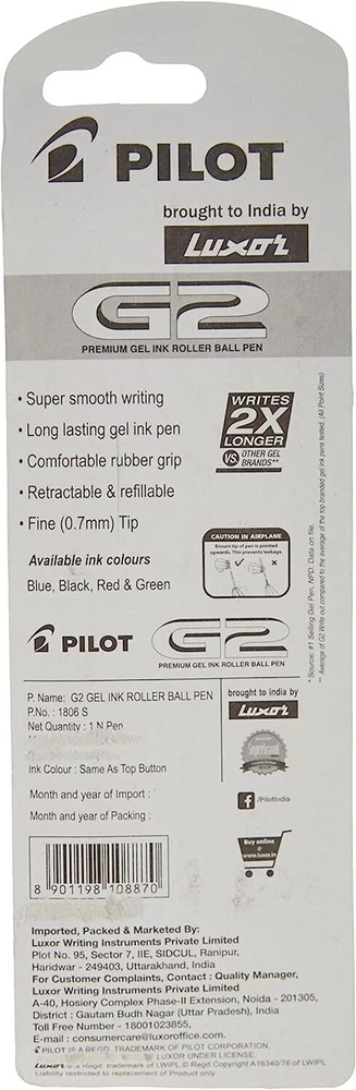 Superior Quality G-7 Gel Ink Ballpoint Pen Range With A 0,7mm Tip & A 0,39mm Line Width. Pilots Best Selling Retractable Gel Pen Features Smooth Acid Free, Archive Safe Gel Ink, Tungsten Carbide Ball & Cushioned Ergonomic Grip For Additional Comfort & Blob Free & Vivid Writing Experience From Start To Finish. Refillable Using BLS-G2-7. Full Range Of 26 Colours Including Pastel & Metallic In Packs Of 1, 3, 6, 12 & Assorted. Please See Store For Full Range Of Pens & Refills Please See Store For Full Range Of Pens & Refills Pilots Best Selling Retractable Gel Pen Features Smooth Acid Free, Archive Safe Gel Ink, Tungsten Carbide Ball & Cushioned Ergonomic Grip For Additional Comfort & Blob Free & Vivid Writing Experience From Start To Finish International products have separate terms, are sold from abroad and may differ from local products, including fit, age ratings, and language of product, labeling or instructions Please See Store For Full Range Of Pens & Refills"
