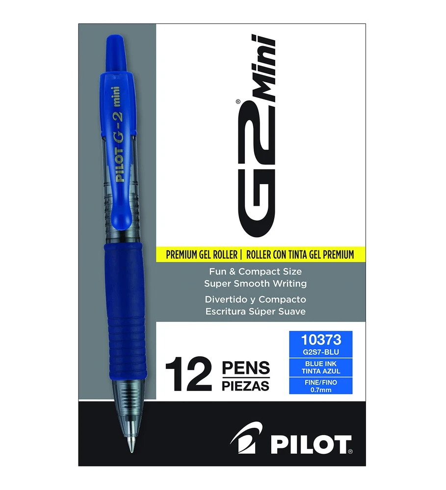 Combining high-performance writing with a compact design, the PILOT G2 Mini Rolling Ball Pens fit perfectly in your purse, planner or pocket. These smooth-flowing gel pens deliver vivid and clear lines, perfect for note-taking, writing, and doodling. The 0.7 mm fine point size strikes a balance between fine and bold lines, making your writing and drawings stand out. These pens are retractable, so you don't have to worry about losing a cap. Archival-safe and acid-free black ink is long-lasting and fade-resistant, ensuring your documents last for a long time. The comfortable rubber grip offers ergonomic support, reducing hand fatigue and making lengthy writing projects a breeze. Pilot's G2 line blends smooth writing with long-lasting ink, precision and comfort for an exceptional writing experience. Smooth & Long-lasting: Enjoy a smooth writing experience thanks to the gel ink that glides effortlessly across paper; G2 has been proven to be the longest-lasting gel ink pen that allows you to write more (Data on File) Comfortable Grip: A contoured rubber grip provides ergonomic support, making long writing projects easier; The 0.7mm fine tip produces clear and bold writing Versatile: Perfect for everyday writing tasks such as taking notes and jotting down grocery lists; The G2 tip delivers crisp, clean lines ideal for writing, intricate designs, drawing, sketching or doodling Compact Design & Quick Drying Ink: These fun, mini-sized pens fit perfectly in purses, briefcases and pockets; The vibrant, quick-drying ink helps prevent smudges and smears Power to the Pen: Express yourself effortlessly with Pilot's line of innovative writing tools, including gel ink, erasable, rolling ball, ballpoint and fountain pens, & dry erase markers & more