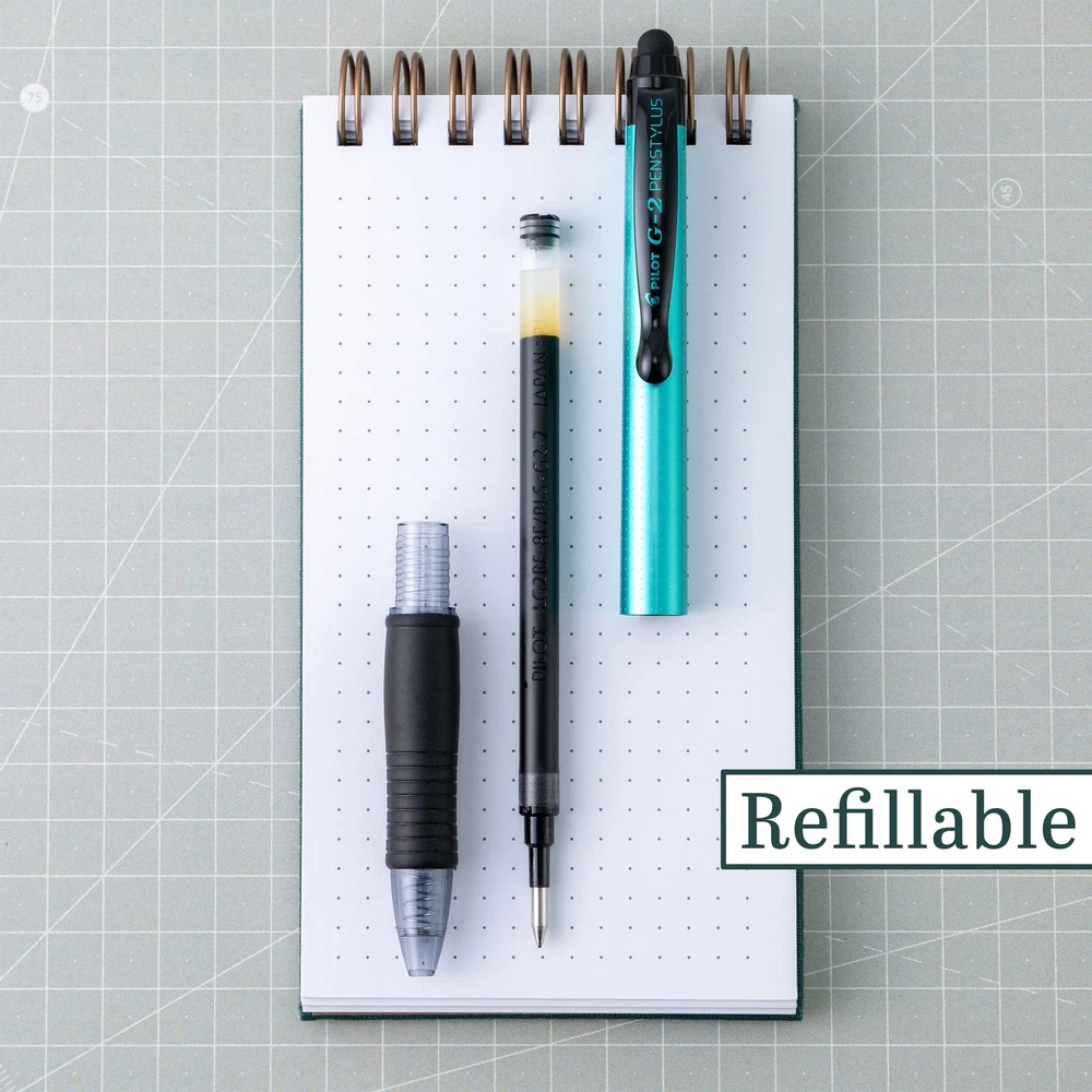 Enjoy the best of both worlds with the 2-in-1 Pilot G2 Pen Stylus. Its soft tip stylus glides effortlessly across the touchscreens of smartphones and tablets, enabling seamless navigation, document annotation and editing, as well as drawing and sketching on a digital canvas. Capture your ideas on paper with the G2 gel pen tip, known for its smoothness and long-lasting G2 ink. The fine 0.7mm point ensures precise lines and impeccable detail, making it ideal for everyday writing, note-taking, or creative projects. Designed with a comfortable contoured grip, this stylus provides an ergonomic hold, allowing for extended writing sessions without discomfort or fatigue. The black ink is archival-safe and acid-free, ensuring your documents stand the test of time. Pilot's G2 line blends smooth writing with long-lasting ink, precision and comfort for an exceptional writing experience. 2-in-1 Stylus Tip & Gel Pen: Tackle any digital or written challenge with this innovative writing tool that combines the iconic G2 gel pen and a versatile stylus to help you write effortlessly on both digital devices and paper with ease and precision Smooth & Long-lasting: Enjoy a smooth writing experience thanks to the gel ink that glides effortlessly across paper; G2 has been proven to be the longest-lasting gel ink pen so you can write more without having to refill often (Data on File) High-Performance Stylus: Features a soft rubber capacitive tip that moves effortlessly to mimic touch on a touchscreen, delivering incredible accuracy for effortless navigation and writing Versatile Applications: The stylus tip allows for precise input on touchscreens, such as smartphones, tablets and touchscreen laptops; Switch to the gel pen for taking notes, jotting down lists, doodling or sketching on paper Power to the Pen: Express yourself effortlessly with Pilot's line of innovative writing tools, including gel ink, erasable, rolling ball, ballpoint and fountain pens, & dry erase markers & more