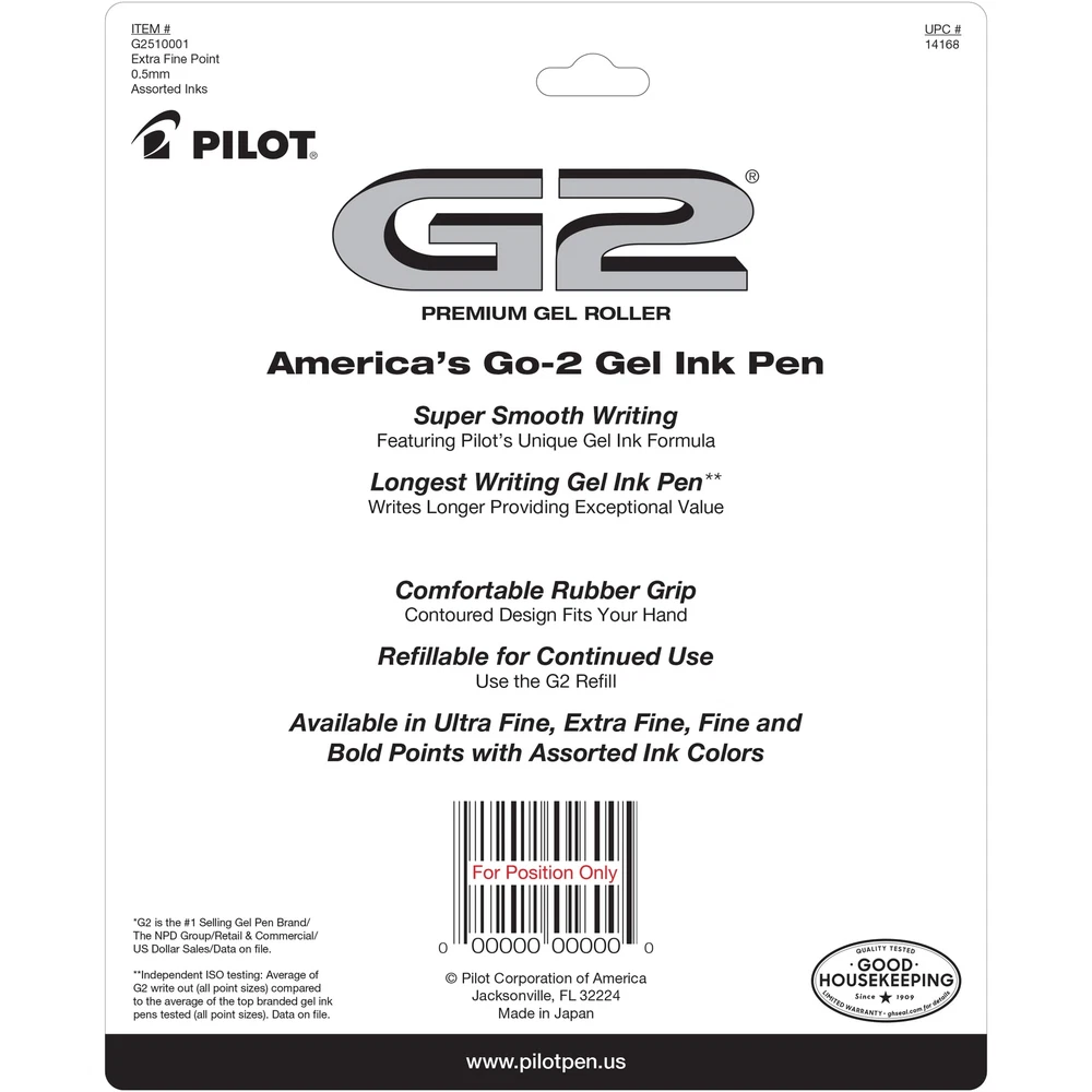 G2 is the ultimate pen for the everyday overachiever. Pilot G2 is America's #1 Selling Go-2 gel ink pen (NPD, 2017) G2 writes smoothly, as a comfortable rubber grip, and has been proven to write longer vs. the average of branded competitors. Make G2 your Go-2 pen! G2 is America’s #1 selling,1 longest lasting,2 smooth writing gel ink pen brand G2 Fine point is the most popular G2 point size Comfortable grip & refillable