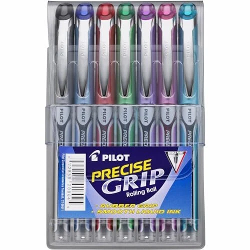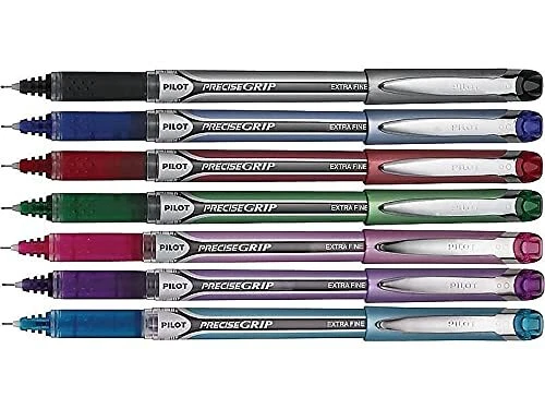 Discover the perfect harmony of comfort, precision and smoothness with Pilot Precise Grip Liquid Ink Rolling Ball Pens. Whether you are signing important documents, jotting down notes or expressing creativity through artistic endeavors, Precise pens ensure your ideas flow with incredible control and finesse. Featuring Pilot’s Precise Point Technology, these pens deliver clean and accurate lines with every stroke. Create masterpieces of writing or art with these easy-gliding liquid ink pens that offer an ultra-smooth and skip-free writing experience. The 0.5 mm pen point size delivers a finer and more precise writing style. It enables you to create intricate details, write in smaller spaces, and achieve a higher level of accuracy. Archival-safe and acid-free black and blue pens are formulated to be long-lasting and fade-resistant, ensuring your documents last for a long time. The comfortable rubber grip offers ergonomic support, reducing hand fatigue during extended writing sessions. Elevate your writing with Precise - America’s favorite rolling ball pen brand, available in several vibrant colors. Smooth Liquid Ink: Glides effortlessly across paper, offering consistent strokes and skip-free writing; These rollerball pens deliver an intense ink lay down with rich pigmented color Patented Precise Point Technology: Pilot's Precise pens feature a precision tip that delivers clean and accurate lines every time, making your writing or creativity come to life with remarkable detail Assorted Colors: Add a burst of color to your writing or creative projects with this 7-pack pouch featuring blue, green, red, black, pink, turquoise and purple pens; Ideal for art, note-taking, color-coding information, journaling and more Superior Comfort & Control: The soft rubber grip offers a comfortable writing experience while providing excellent control Power to the Pen: Express yourself effortlessly with Pilot's line of innovative writing tools, including gel ink, erasable, rolling ball, ballpoint and fountain pens & dry erase markers & more