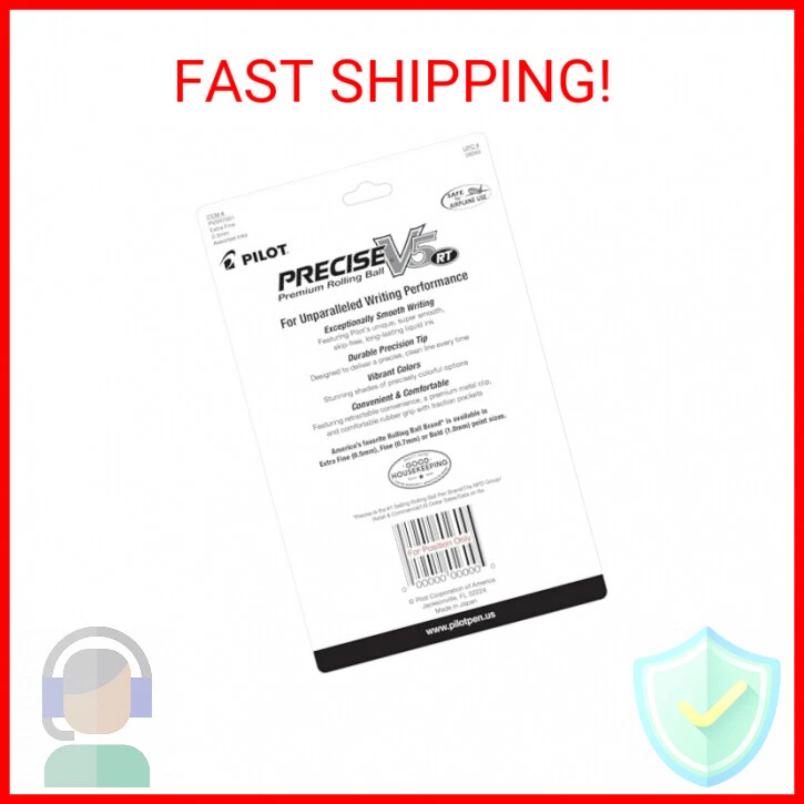 Pilot, Precise V5 RT Refillable & Retractable Liquid Ink Rolling Ball Pens, Extra Fine Point (0.5 mm) Assorted Ink Colors, Pack of 7 - Smooth Writing Liquid Ink: Glides effortlessly across the paper, offering consistent strokes and skip-free writing; Made with a durable tungsten carbide extra fine tip - Patented Precise Point Technology: Pilot's Precise pens feature a precision tip that delivers clean and accurate lines every time, making your writing or creativity come to life with remarkable detail - Versatile: Perfect for taking notes & jotting down grocery lists; Writes smooth for a polished, writing, drawing, designing, sketching or doodling experience - Superior Comfort & Control: The soft rubber grip offers a comfortable writing experience while providing excellent control - Power to the Pen: Express yourself effortlessly with Pilot's line of innovative writing tools, including gel ink, erasable, rolling ball, ballpoint and fountain pens & dry erase markers & more Payments We accept the following payment methods PayPal Support Our dedicated customer support team is here to assist you from 9AM to 5PM Monday through Friday, excluding public holidays. Should you reach out to us and not recieve an immediate response, it's likely due to a higher-than-usual volume of inquires. We want to reassure you that your concerns are important to us, and we're working dilligently to get back to you. Expect a response by the next business day at the latest. Your understanding and patience are greatly valued as we strive to provide you with the best support possible! Shipping All orders are processed within 5 business days. Shipping estimates may be shown on this listing by eBay, and these are often not an accurate reflection of our shipping times. If we are experiencing a high volume of orders, shipments may be delayed by a few days. Please allow additional days in transit for delivery. If there will be a significant delay in shipment of your order, we will contact you via message. Shipping rates & delivery estimates Shipping is often free, but if charges for your order apply they will be calculated and displayed at checkout.