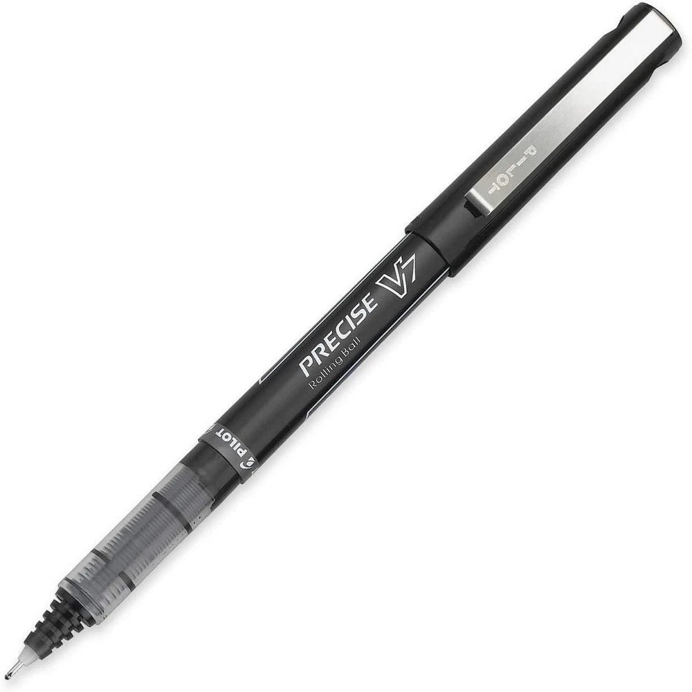 There is a fine line between good and great and that line is drawn with Pilot Precise V7. Precise V7 rolling ball pens combine Pilot's smooth writing ink, premium metal accents, and iconic look in order to deliver a premium, sophisticated writing experience. Precise V7 is for writers in need of a superior writing performance. Unique liquid ink formula maintains consistent flowing strokes Incredibly smooth skip-free writing Visible ink supply lets you see how much ink is left