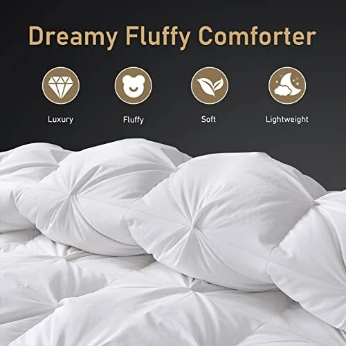 Return Policy Fast Delivery Trusted seller Pinch Pleat Down Feather Fibers Comforter Twin Size, Ultra Soft Cotton Blend Cover, Luxury Fluffy Duvet Insert with 8 Corner Tabs, All-Season Medium Warm Bed Comforter(White, 68"x90") Product Description Blooming Warmth: Features a pinch-pleated design, ensuring maximum loft and cloud-like warmth; premium filler provides both warmth and breathability Luxury Bedding Choice: Crafted from 400 thread-count cotton blend with a brushed finish; offers exceptional softness and an elegant touch with handmade pinch pleats for a sophisticated look Temperature Regulation: Perfect balance of warmth and breathability; maintains comfortable sleep temperature Elaborate Details: Constructed with a baffle box structure and double stitching to prevent filler leakage; features self-fabric piping for durability and loops with sewn corner tabs to secure the duvet cover Care Instructions: Vacuum-packed for shipping; fluff gently and allow a few hours to regain loft; use with a duvet cover to extend lifespan; spot clean or dry clean as needed Shipping Returns Payment Shipping Shipping is FREE to all addresses other than APO/PO boxes in the lower 48 states. All our stock ships from US-based warehouses. Shipped via USPS or UPS (depending on location and package weight) Unless stated otherwise, all orders will ship within 24-72 hours of your payment being processed. Check our feedback to see the great reviews of FAST shipping we offer. Returns Seller does not accept returns Payment We currently accept payment via eBay managed payments only. Once payment is cleared, we will dispatch your shipment within 1-3 business days. Please refer to the "Shipping" tab for more information regarding shipping speed to your destination.
