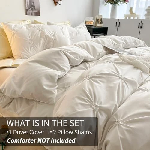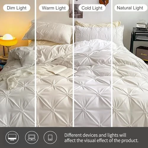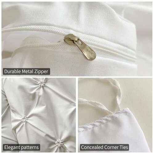 Menu 1. We require immediate payment. 2. We currently accept payment via eBay managed payments only. 3. Once payment is cleared, we will dispatch your shipment within 1-3 business days. Please refer to the "Shipping" tab for more information regarding shipping speed to your destination. Pinch Pleat Flower Duvet Cover King Size,Soft and Breathable Microfiber Bedding Set,3 Pieces,1 Duvet Cover with Zipper Closure & Corner Ties and 2 Pillow Shams,Easy Care,104 X 90 Inches (White) Product description 【QUALITY MATERIAL】 Featuring premium polyester microfiber material, its texture provides coziness,soft and breathable, so that you can enjoy a deep night's sleep. It's available in a variety of colors, and can perfectly match any bedroom decoration. The unique solid geometric pinch pleated flower pattern adds an elegant, and stylish atmosp to your bedroom. 【A PERFECT GIFT】Beautiful and practical duvet cover set, give your loved one a comfortable and romantic gift, whether it's for Mother's Day, Valentine's Day, Christmas, or just to show you care. 【DURABILITY】The high tensile strength makes the duvet cover set strong, and less likely to rip or tear. At the same time, because it is polyester fiber material, it has better Thermal insulation function and Environmental protection characteristics. 【THOUGHTFUL DETAILS&SIMPLE CARE】 Our duvet cover with 8 interior corner ties, making our duvet fit seamlessly, fixing our duvet and more convenient to use. It also has a zipper closure, which can be opened and closed smoothly, convenient for us to put the duvet into the duvet cover. In addition, the care is also very simple, Machine wash in cold water, gentle cycle, tumble dry at low heat, do not bleach. 【WHAT YOU WILL GET】 3-piece king size duvet cover set includes one duvet cover king size 104"x 90" and two pillow shams 20"x 36". Comforter/insert not included. The dimensions of all products are manually measured, and some errors are normal and do not affect use. PLEASE MESSAGE US IF YOU HAVE ANY OTHER QUESTIONS, AND MANY THANKS FOR READING ALL OF THIS. Copyright ©#. All Rights Reserved.