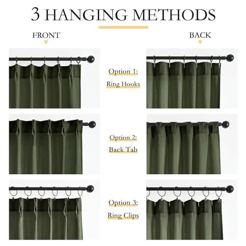 Return Policy Fast Delivery Trusted seller Olive Green Pinch Pleat Sheer Linen 102 Inches Long Curtains Light Filtering Semi Sheer Luxury Elegant Living Room Window Curtains Bedroom 2 Panels 102 Inch Product Description Pinch Pleat Design: linen curtains feature a elegant pinch pleated design that uses more fabric than other curtains of the same size. Using machines to create the pleat eliminates the need for pinch pleated curtains to be shaped by the buyer using 4-prongs hook. Each panel has 7 pleats that appear exquisite and layered. The undulating and flowing waves create a luxury and cozy atmosp to any room. Natural Linen Fabric: Upgraded linen/cotton/polyester blend fabric - the softness and natural texture of linen and cotton, combined with the superior durability of polyester. This unique blend fabric has excellent drapability, breathability and practicality. Whether you have a minimalist, modern, traditional, or eclectic style, linen curtains will complement your home's aesthetic. Privacy Curtains That Let Light In: Experience the perfect balance of light and privacy! The key feature of these curtains is let soft, diffused light filter through, yet block any view of your room. They effectively shield your privacy from prying eyes outside. Linen curtains work well in living room, bedrooms, dining rooms, nursery, balcony, patio, etc. Gift Box Packaging & Hanging Methods: 2 panels of pleated curtains with 20 metal hooks per package. Recommendation Method 1: Using the metal curtain hooks, hang them on your curtain rod/track with ring loops. Method 2: Using the back tab to hide the curtain rod. Method 3: Using the clip rings is more convenient for installation (clip and rings are NOT INCLUDED). Easy Care: Machine wash cold, gentle cycle, no bleach, low-temperature dryer or air dry naturally. Using gentle-temperature iron if wrinkled. NOTE: t may be a slight color difference between actual fabric and photo under different lighting conditions, just like how paint on the wall may appear different under different light sources. Shipping Returns Payment Shipping Shipping is FREE to all addresses other than APO/PO boxes in the lower 48 states. All our stock ships from US-based warehouses. Shipped via USPS or UPS (depending on location and package weight) Unless stated otherwise, all orders will ship within 24-72 hours of your payment being processed. Check our feedback to see the great reviews of FAST shipping we offer. Returns Seller does not accept returns Payment We currently accept payment via eBay managed payments only. Once payment is cleared, we will dispatch your shipment within 1-3 business days. Please refer to the "Shipping" tab for more information regarding shipping speed to your destination.