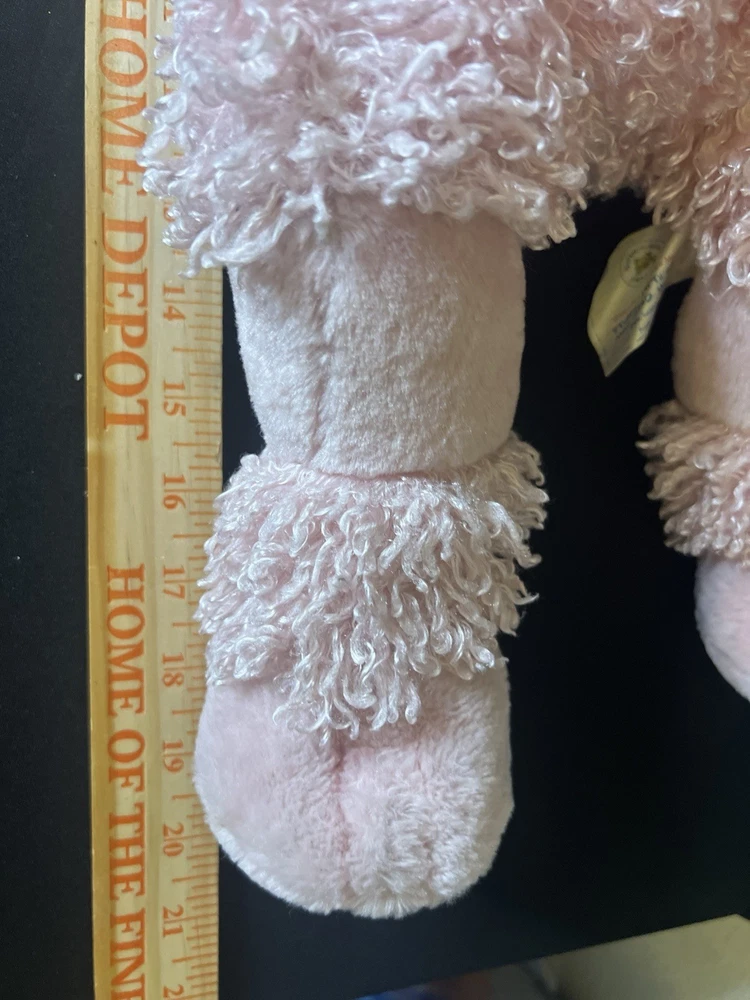 The product is a 19-inch pink plush poodle stuffed animal toy from Build-A-Bear Workshop. This retired plushie is designed with brown eyes and a cute puppy theme, making it suitable for all occasions and recommended for ages 3 and up. It comes as a single unit without packaging and weighs about 1.5 lbs. This original Build-A-Bear item is a delightful addition to any collection of stuffed animals, especially for fans of dogs and the brand's workshop. CONDITION: Pre-owned - Great Clean Condition Please look at all photos as they are part of the Description Please Ask any Questions, I will try and answer as quick as possible. Please check out my other listings - New items are listed daily! Add me to your favorite Sellers list for quick access to new listings!! Quick Shipping - items are shipped same day as payment, latest day after Thank you