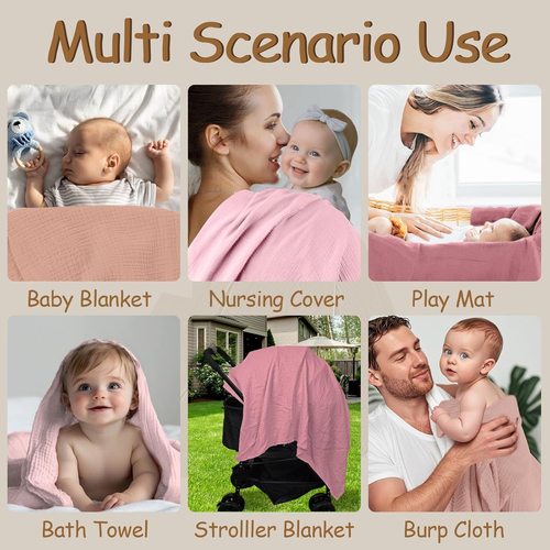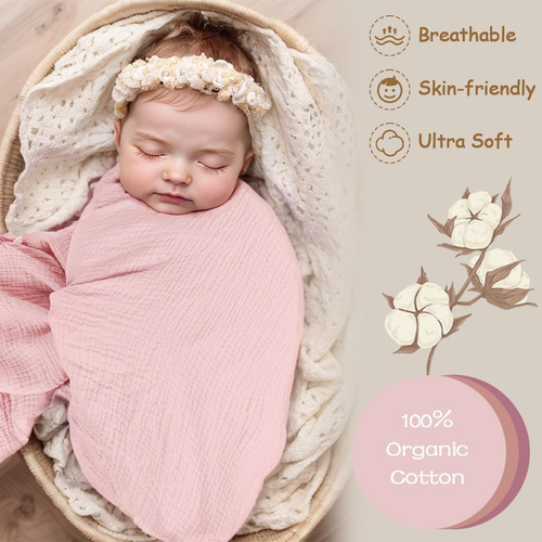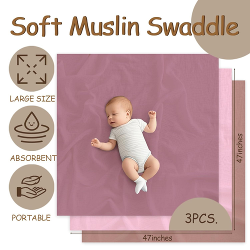 Muslin Swaddle Blankets for Baby Girl, Receiving Blankets for Girls Nursery Large 47 x 47 Inches Soft Breathable Skin-Friendly Cotton Blanket for Newborn 3 Packs, Pink LuxeFusion Product Description Features 100%cotton Organic Cotton: Each set includes three blankets,Neutral colours are suitable for both boys and girls. Multipurpose Blanket: Newborn swaddle blanket, it can serve as a stroller blanket, crib blanket, or even as a play mat. The muslin swaddle can be used all around the home or going out as they come in super handy when bathing, feeding, burping, swaddling or cleaning baby. With its lightweight and compact design, this blanket is easy to pack and carry, making it the perfect travel companion for your baby. Its design also makes it receiving blankets for boys and girls. Breathable & Skin-friendly & Ultre soft:Our muslin baby blanket are made of breathable organic cotton muslin fabric, breathable and skin-friendly for your baby's delicate skin. Newborn swaddle blanket make your baby sleep more comfortable. Size: large swaddle blanket can effortlessly wrap around newborn babies to provide them with a cozy embrace and ensure warmth and security, Absorbent,portable,(47X47 inches) large muslin swaddle blankets 3pcs for both parents and children daily use,Its a practical choice for busy parents. Easy Care & Last Long & Vibrant Colours: The cotton receiving blankets is machine washable and stays soft even after multiple washes. The fabric Reusable and very soft, breathable and absorbent. providing soft comfort and warmth for your baby throughout all seasons.Vibrant colours add a touch of joy to each outfit, and a variety of colours combinations provide more options for new parents. Product Details Material: ‎Cotton Color: ‎Pink Brand: ‎breebleep Special Feature: ‎Lightweight, Breathable Style: ‎Modern Blanket Form: ‎Swaddle Age Range (Description): ‎Baby Product Dimensions: ‎47"L x 47"W Theme: ‎Love Pattern: ‎Solid Recommended Uses For Product: ‎Travel, Napping Seasons: ‎All Fill Material: ‎Cotton Product Care Instructions: ‎Machine Wash Size: ‎47 X 47 Inch Fabric Type: ‎100%cotton Unit Count: ‎3.0 Count Number of Items: ‎3 Fabric Warmth Description: ‎Lightweight Manufacturer: ‎Breebleep Material Type: ‎Cotton Additional product features: ‎Lightweight, Breathable Batteries required: ‎No Item Weight: ‎1.6 pounds Material: Cotton Color: Pink Brand: breebleep Special Feature: Lightweight, Breathable Style: Modern 🚚 Free Shipping All orders ship free and fast to your doorstep. 🔁 Easy Returns Satisfaction guaranteed. 30-day returns, no questions asked. 💬 24/7 Support Contact us anytime; we’re here to help, day or night. Brought to you by LuxeFusion – Quality you can trust.