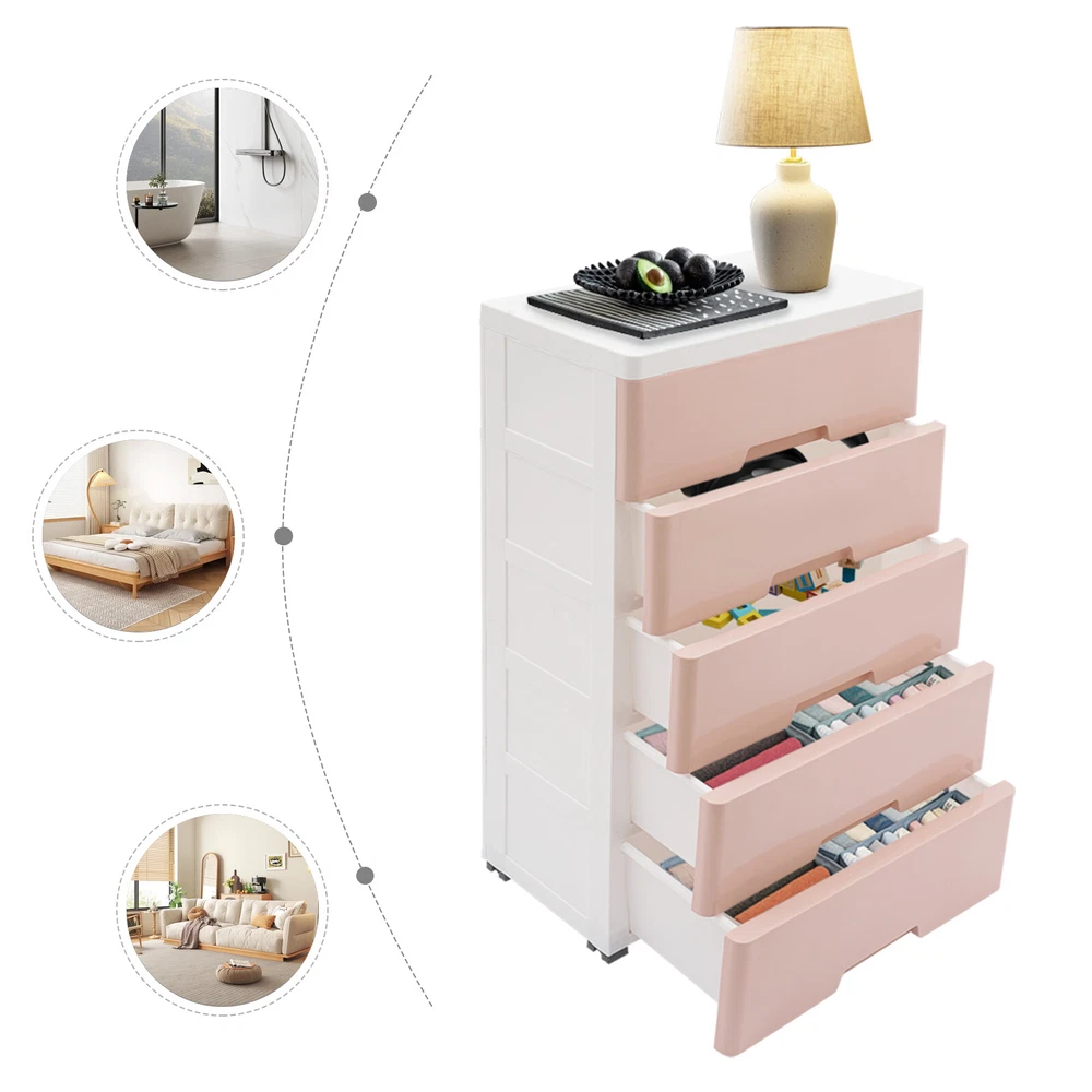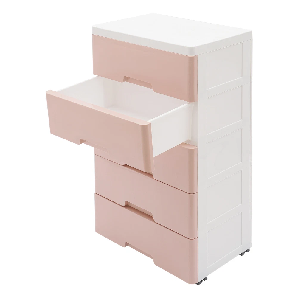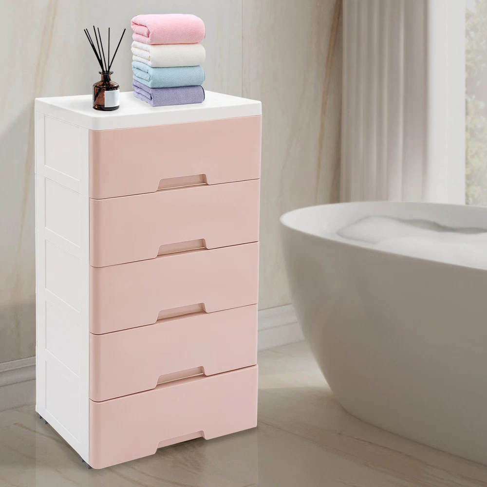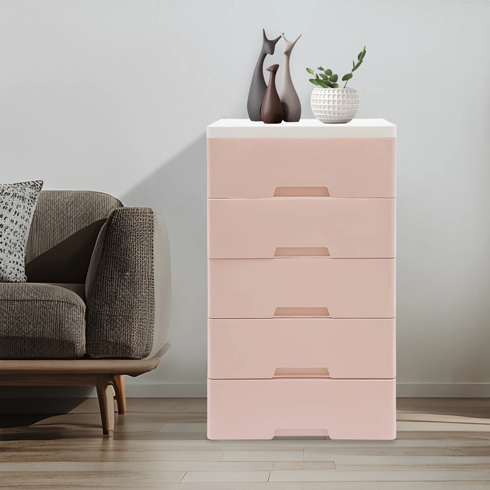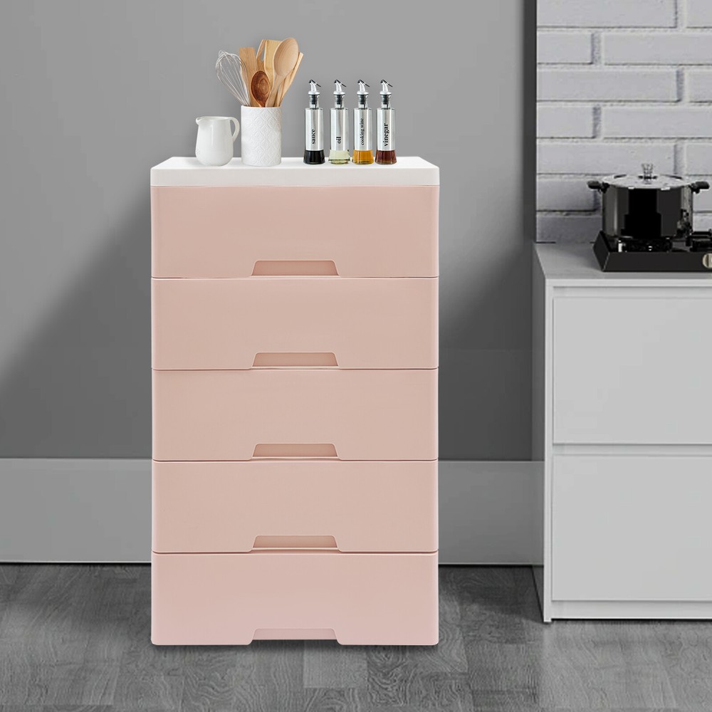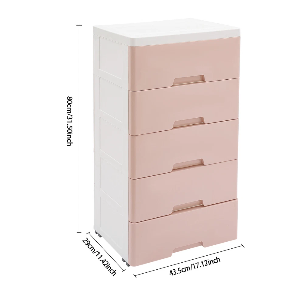 Item Height: 80cm Mounting: Free Standing Type: Chest of Drawers UPC: Does not apply Shape: Rectangular Number of Drawers: 5 Department: Adults gtin13: Does not apply Item Width: 29cm Brand: Unbrand Occasion: Party Room: Bedroom Color: Pink Material: PP Assembly Required: Yes Features: Laminated Item Length: 43.5cm