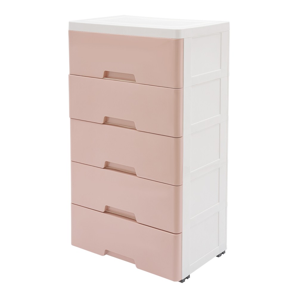 Pink 5-Drawer Chest Storage Dresser Tower for Bedroom Organization