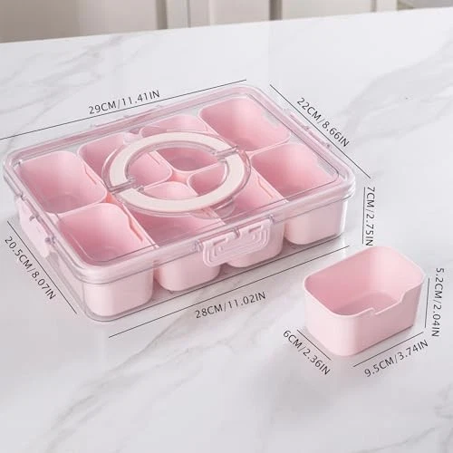 Return Policy Fast Delivery Trusted seller Divided Snack Serving Tray with Lid and Handle Travel Snackle Charcuterie Container Portable Storage Organizer for Candy, Fruits, Nuts, Snacks, Party, Picnic (1pack, Pink) Product Description Easy to Clean: Please note that this snack tray cannot be used in dishwashers or microwaves. However, its simple design and detachable compartments make handwashing a breeze, ensuring your snack tray stays clean and hygienic Versatile Design: Divided Snack Serving Tray is your ideal companion for travel. With 8 separate compartments, it accommodates various snacks such as candies, fruits, nuts, and more, keeping your snacks tidy and organized Portable Design: Featuring a handle and a sealable lid, it's convenient to carry, maintaining the freshness and hygiene of your food. Whether on long journeys, picnics, camping trips, or in the office, it meets your needs High-Quality Material: Made of food-grade plastic, it's durable and free from harmful substances, ensuring the safety of your food. Made of durable and BPA-free plastic, The material is safe and can be reused Multi-functional Use:This snack tray revolutionizes meal preparation! With this tray, you can pre-wash and chop items like veggies, fruits, or peppers, streamlining the salad-making process. boosting your meal prep efficiency. It's also perfect for adult snacking, simplifying the process of bringing condiments and sides to picnics or gatherings Shipping Returns Payment Shipping Shipping is FREE to all addresses other than APO/PO boxes in the lower 48 states. All our stock ships from US-based warehouses. Shipped via USPS or UPS (depending on location and package weight) Unless stated otherwise, all orders will ship within 24-72 hours of your payment being processed. Check our feedback to see the great reviews of FAST shipping we offer. Returns Seller does not accept returns Payment We currently accept payment via eBay managed payments only. Once payment is cleared, we will dispatch your shipment within 1-3 business days. Please refer to the "Shipping" tab for more information regarding shipping speed to your destination.