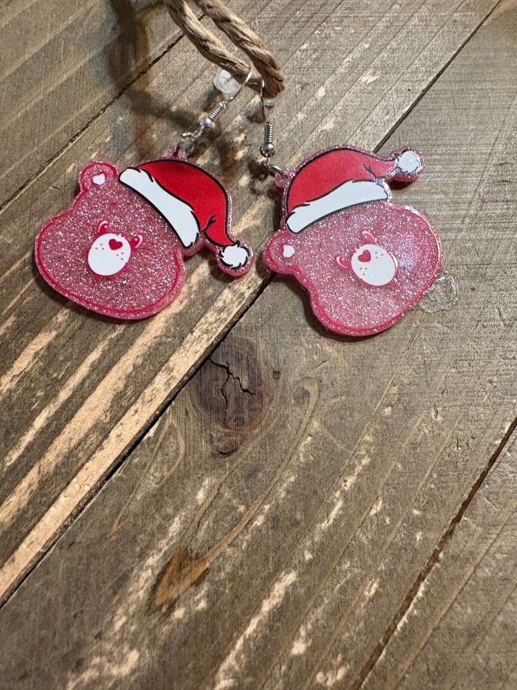 Description Holidays are meant to be accessorized! Pink Care Bear Holiday Earrings feature a pink Care Bear's face that is wearing a surprised look and a red Santa hat. The bodies of the earrings are filled with glitter that shines in the light. Pair these earrings with a pink sweater for an eye-catching look! Details Dimensions: 1.39" x 1.5" Type: Ear Wire Material: Acrylic & Metal Color: Pink, Red & White Metal Color: Silver Features One of a kind, fashion jewelry, everyday jewelry Great gift for that special girl, anniversary gift, birthday gift or gift to say how much you care. Check out the rest of our store for other great products!Fast Shipping Satisfaction Guaranteed Your source for great products shipped in a pink box with a thank you gift and discount coupon shipped from Pocatello ID Questions/Feedback Don't forget to leave feedback