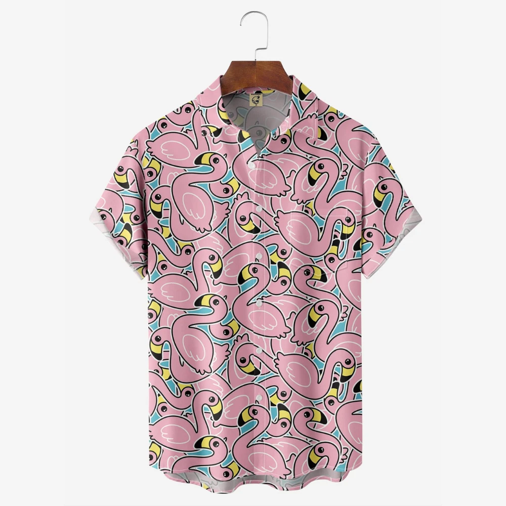 Pink Cartoon Flamingo Hawaiian Shirt For Men US Size Summer Style NEW
