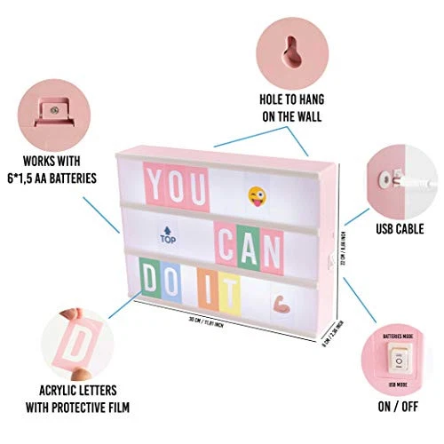 Return Policy Fast Delivery Trusted seller Pink Cinema Light Box with 400 Letters & Emojis & 2 Markers - BONNYCO | Led Light Box Home Office & Room Decor | Light Up Sign Letters Board Gifts for Women & Girls Christmas & Birthdays | Pink Decor Product Description ? 220 LETTERS & 180 EMOJIS ? Marquee light box with 110 pink letters, 110 color letters and 180 emojis. You can fit up to 10 letters in each row! Unlike others with just 8-9. This makes our pink cinematic light box an original gifts for girls and women for any special occasion. Original gift for birthdays and Christmas for a 4, 5, 6, 7, 8, 9, 10, 11 and 12 year old girl ? 2 MARKERS AND 30 TRANSPARENT CARDS ? With this led light sign give your messages a special and personalized touch by writing on transparent cards with the included red and blue markers. Without a doubt, a fun and original gift to encourage creativity. Light up letters ideal as a gift for birthdays and Christmas ? VERY EASY TO USE ? This led message board works with 6 x AA batteries (not included) or with the included 59.05 in USB wire. Slide the cards in and decorate your birthday party, baby shower, wedding, anniversary or any other great event. Led letter board perfect for girls bedroom decor and home decor ? DON'T LOSE YOUR LETTERS ? With this pink light box sign we include two nice envelopes to keep your cards safe! So, you will not lose them or scratch them by keeping them randomly stored. Our cinema light box with letters also comes with a pretty packaging to gift. This light up message board for girls is also used as girl toys ? CREATE A SPECIAL ATMOSPHERE ? Pink light up letter board with a dim led light perfect to give a feminine aesthetic touch to your room, office, business or any other place that you want to decorate. This light box with letters and emojis will become your perfect gadget to personalize your own message. Cinema box sign with letters as original gifts for moms, wives and girlfriends ? LETTER LIGHT BOX FOR CREATING PHRASES ? With this light up word sign, you can create phrases and decorate them with the included accessories. You can create a phrase related to how you feel, leave messages for your friends, write an inspiring quote... and much more! Little ones can improve their reading skills thanks to these decorative letter board light up ? YOUTH GIRLS ROOM DECOR ? The light up box is perfect for room decor for teen girls and child too. You can place it on your bedside table, on your desk, or on any shelf. The letter light up sign will give your room a super aesthetic style! A customisable lightbox, ideal as a birthday gifts for girls and gifts for teen girls Shipping Returns Payment Shipping Shipping is FREE to all addresses other than APO/PO boxes in the lower 48 states. All our stock ships from US-based warehouses. Shipped via USPS or UPS (depending on location and package weight) Unless stated otherwise, all orders will ship within 24-72 hours of your payment being processed. Check our feedback to see the great reviews of FAST shipping we offer. Returns Seller does not accept returns Payment We currently accept payment via eBay managed payments only. Once payment is cleared, we will dispatch your shipment within 1-3 business days. Please refer to the "Shipping" tab for more information regarding shipping speed to your destination.