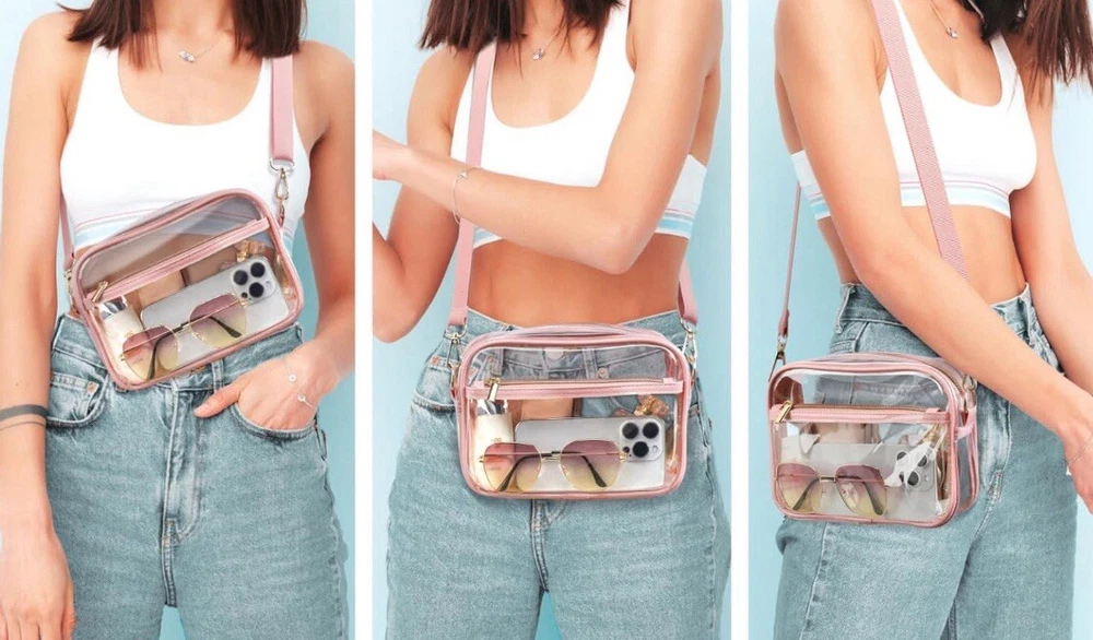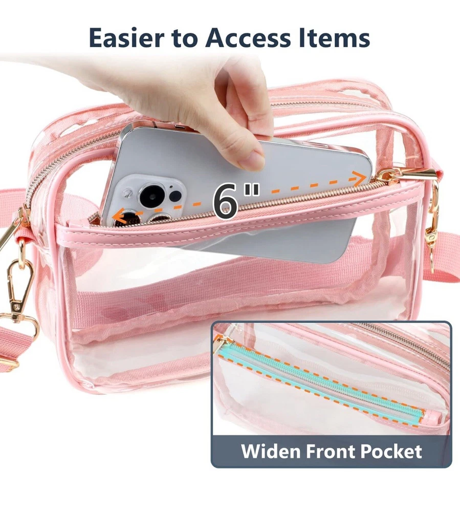 Pink Clear Transparent Concert/ Stadium Crossbody Bag W/ Add. Fashion Strap. Condition is New with tags. Shipped with USPS Ground Advantage.