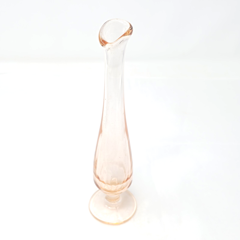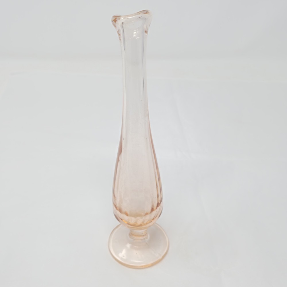 Pink Depression Glass Bud Vase Fluted Swung Etched 8.5” Vtg MCM READ