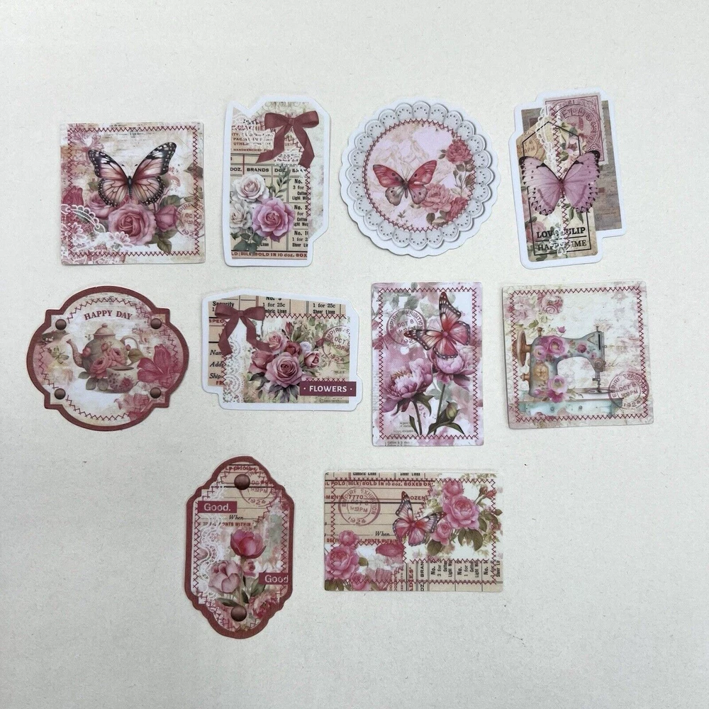Pink Floral Butterfly Washi Paper Stickers Junk Journals Collage Scrapbooking