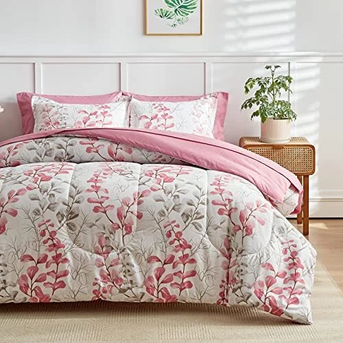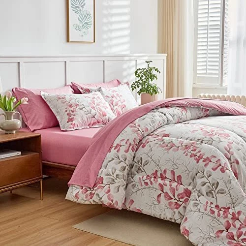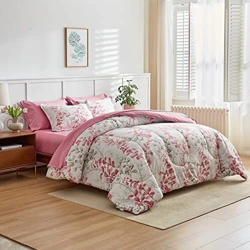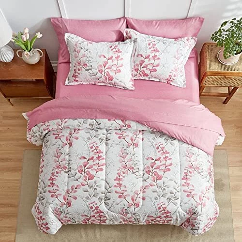 Return Policy Fast Delivery Trusted seller Pink Floral Comforter Sheet Set Bed in a Bag 7 Pieces Queen Size Pink Gray Flower Leaves Bedding Set (1 Comforter 2 Pillow Shams 1 Flat Sheet 1 Fitted Sheet 2 Pillowcases) Product Description Style: White Comforter with Red and Gray Floral with Leaves Branches. The main style is Pink and Gray Flowers leaves and white flowers, Very Cute and bright Sheet set are Pink style .Modern and beautiful for most bedding room. Great style for man, women, kids. Super great for the coming summe. Bed in a Bag design, Just open it. WHAT IN THE PACKAGE:7 Pieces Queen Size Bed in a bag including 1 comforter 88”x88”, 2 pillow shams 20”x26”, 1 Queen Fitted Sheet 60" W x 80" L + 12", 1 Queen Flat Sheet 90" W x 102" L, 2 Standard Pillowcases 20" W x 30", The fitted sheet is 12 inch Pocket. Fits mattresses up to 12". MATERIAL: Our comforter is made with 100% microfiber outer fabric and ultra soft microfiber inner fill. It is Durable, breathable and machine washable. 90GSM Out fabric and 300GSM WHOLE-PIECE MICROFIBER FILLING help you get warm very easy in cold weather. The sheets, pillow shams or pillow cases are made on 90GSM fabric, very soft and comfortable for a whole night sleep. Easy Care: Design for all season, You can use it in summer. Machine wash cold separately on gentle/delicate cycle. Tumble dry on low. CUSTOMER SERVICE INCLUDED -- If you have any question about our product, please feel free to contact us on . Uozzi Home will help you in 24h :) Shipping Returns Payment Shipping Shipping is FREE to all addresses other than APO/PO boxes in the lower 48 states. All our stock ships from US-based warehouses. Shipped via USPS or UPS (depending on location and package weight) Unless stated otherwise, all orders will ship within 24-72 hours of your payment being processed. Check our feedback to see the great reviews of FAST shipping we offer. Returns Seller does not accept returns Payment We currently accept payment via eBay managed payments only. Once payment is cleared, we will dispatch your shipment within 1-3 business days. Please refer to the "Shipping" tab for more information regarding shipping speed to your destination.