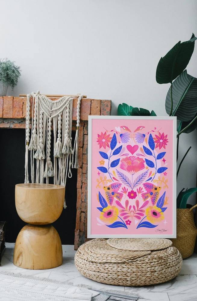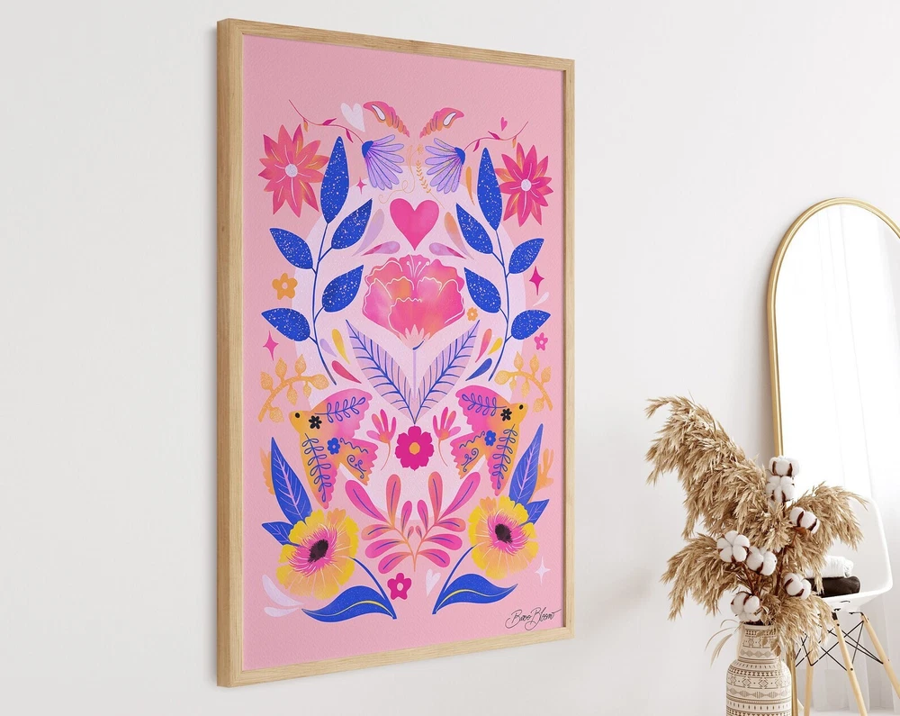 Pink Floral Wall Art Bright Colors Boho Art Print Instant Folklore Art Material: Premium luster photo paper Print type: Inkjet printing One side printed + The finish provides the highest possible resolution and color saturation + Lasts up to 200 years in color and 400 years in black-and-white + Printed on high-quality resin-coated photo base paper medium + Posters can be hung with double-sided tape, tacks, or framed + Hand washing with a gentle cry cloth is recommended for extended durability I will hand select the best choice of paper for your chosen design to ensure top quality results for a beautiful, bright and luxurious print. All prints are sealed in cellophane slips for protection during transportation, and are shipped in a protective cardboard envelope.