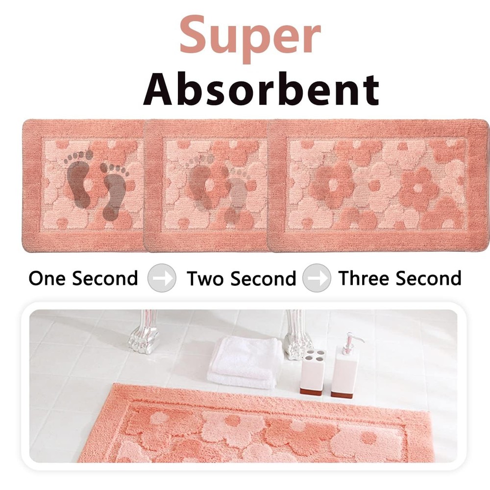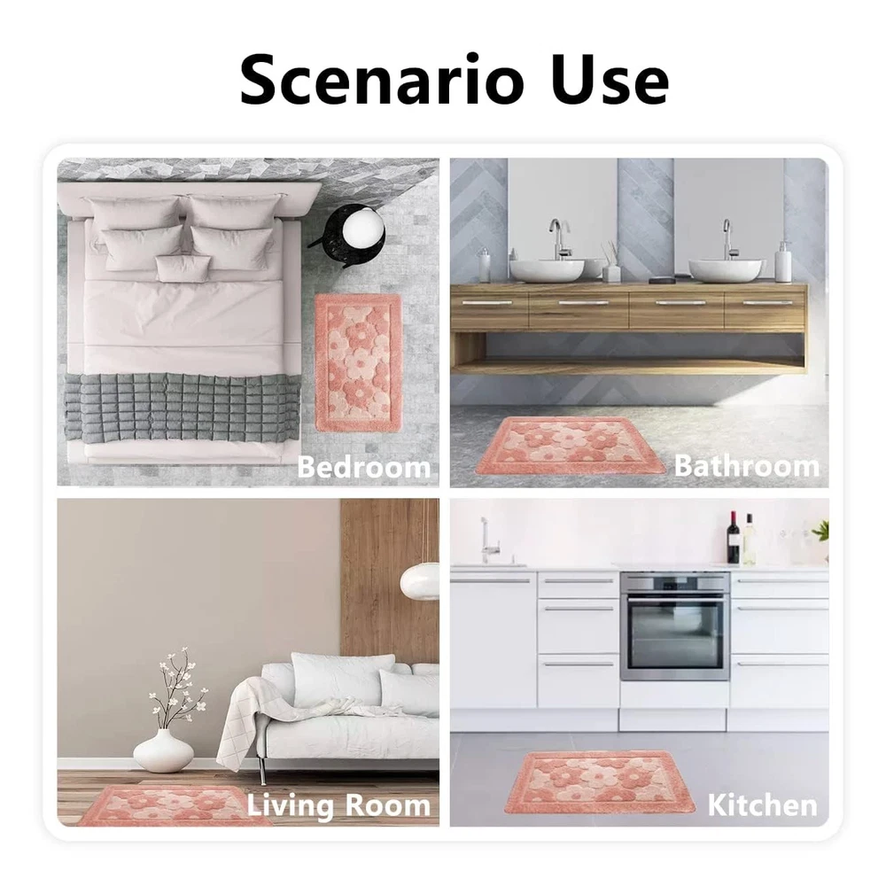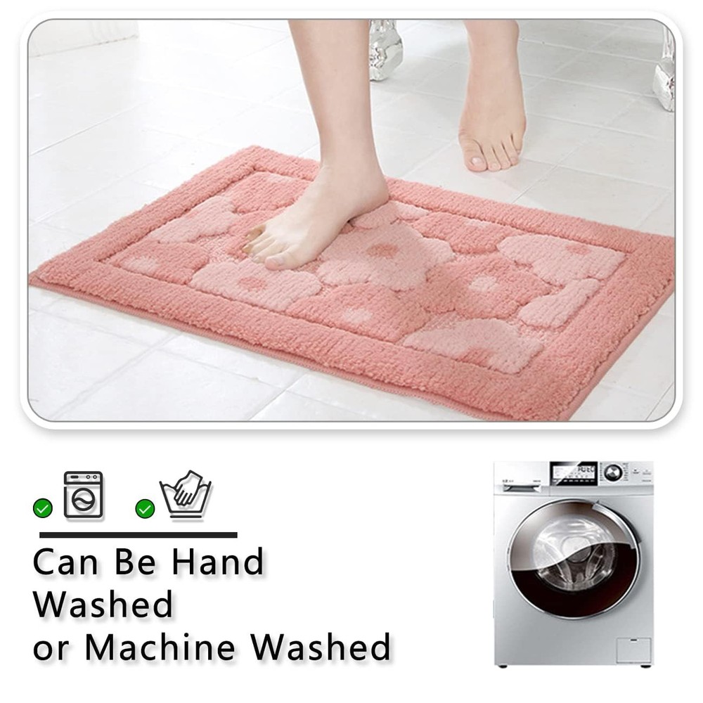Product Name: Pink Flower Bath Mat Material: Polyester + TPR non-slip bottom High Quality: This bath mat has good anti-slip effect, water absorption and softness. Unique Design: The small flower pattern makes this bath rug more stylish. Easy to Clean: Machine washable Q&A: Q: Does the color match the product images exactly? A: Color May slightly vary due to monitor differences. The actual product shall prevail. Q: What size bathroom is suitable for a 20''x 32'' mat? A: The 20''x 32'' mat is a standard medium design, ideal for most standard bathrooms. 🌺[Comfortable Material]: This cute pink flower bath mat rug is made of high quality polyester microfiber material for soft touch feeling. Excellent water absorption and quick drying effect, leaving your feet instantly dry after bathing. With a moderate 0.4-inch thickness, it's comfortable, easy to clean and dry quickly. 🌺[Pink Bath Mat Size]: The dimension of this cute bathroom rug is 20"x32" rectangle which is suitable for shower bathtub, bedroom, kitchen, hallway, floor as a great home lovely decorative carpet. 🌺[Cute Flower Design]: Pink color with small flower decorated, super cute and is very personal and girls will fall in love with this rug. Bright color and not easy to fade. 🌺[Anti-slip Rubber Backing]: The backing of this bath mat is made of non-slip latex, so bathtub mat can be firmly fixed on the floor, doesn't slide around, very safe and comfortable. Placing the bath rugs on clean dry smooth floor only and test the mat with your foot to ensure it won’t move before using. 🌺[Easy to Clean]: Machine wash with cold water and mild detergent. Do not use chlorine or bleach. Tumble dry at low speed or hang dry. Color will not fade and no trouble with fiber-dropping.