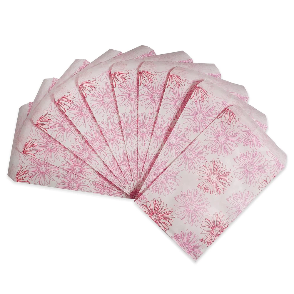 These Pink Flower patterned flat paper gift bags are a great choice for any retailer, party thrower or dedicated collector of flat paper gift bags. The eye-catching design is sure to draw attention from your family, customers, and friends. The 4 different sizes (4” x 6”, 5” x 7”, 6” x 9”, 8.5” x 11”) allow the bag to hold a wide variety of items, everything from jewelry boxes to baked goods to whatever party favors you have planned! We offer these bags in a variety of quantities to cater to your individual needs. Those who are having small events at their homes might prefer our 100 pack, while retailers who need them in bulk might gravitate towards our larger offerings. Each bag is coated with a semi-gloss finish for both aesthetics and to provide minor protection from tearing and piercing. These bags have no gusset which allows them to lie as flat as your choice of filling will allow, making them perfect for table settings or on top of display cases. The white bag base means these are perfect for any occasion, and the Pink Flowers work especially well in Spring and Summer! These Pink Flower bags are eye-catching and stylish, and are sure to hold the attention of your friends, family, and customers. Sold in packs of 100, 200, and 300. Whether you’re buying one pack for a party or buying in bulk for your own , you can find it here! Bags come in a variety of sizes: (4” x 6”), (5” x 7”), (6” x 9”), (8.5” x 11”). Find the right size for you! A perfect choice to package crafts, merchandise, or small gifts for parties, weddings or storefronts. Our flat paper bags are designed to be more tear resistant than typical paper bags as well as easy to open and fill.