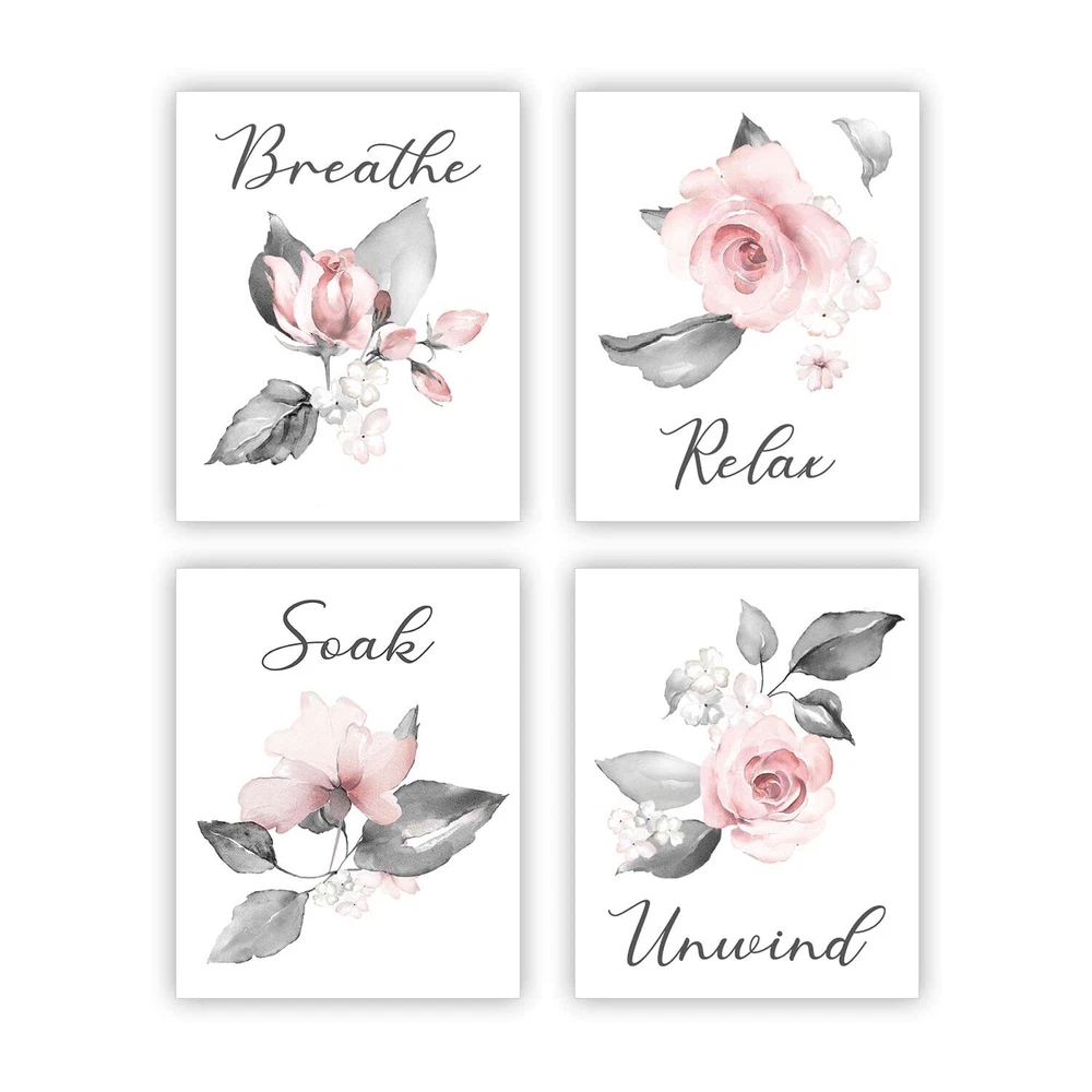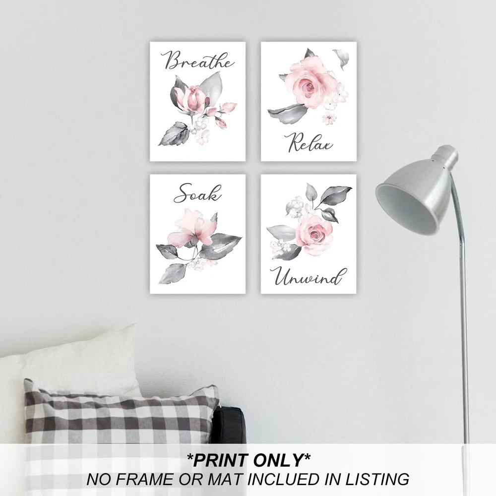 *Specifications* Color: Pink, Grey Size: 8"w x 10"l Number of Pieces: 4 Piece Material: Paper Framed: No Home Decor Style: Modern, Farmhouse, Rustic Recommended Room: Bathroom, Restroom, Toilet, Washroom Theme: Botanical, Quotes *More Info* Package: This item will be packed into a clear plastic sleeve & posted in a a protective stiff envelope to prevent folding or creasing. NO FRAME OR MAT INCLUDED: You'll be receiving an unframed print. Our photos show you previews of frames so you can get an idea of what your prints might look like in your home. Our bathroom signs bring the look and feel of a spa retreat to your home bath; It features the printed words with watercolor florals details SMALL BUT CUTE SIZE - Lovely and light weight to hang up; Never need large space GIVE HOME WARMTH - Decorate your bathroom, washroom, restroom to make it a livable enviroment NO FRAME INCLUDED, PAPER - The unframed print gives you full control over selecting the perfect frame to match your decor and style; Printed on art paper UNIQUE & THOUGHTFUL GIFT - Original gifts show you cared enough; Affordable gift for a Birthdays, Holidays, Baby Showers or Christmas