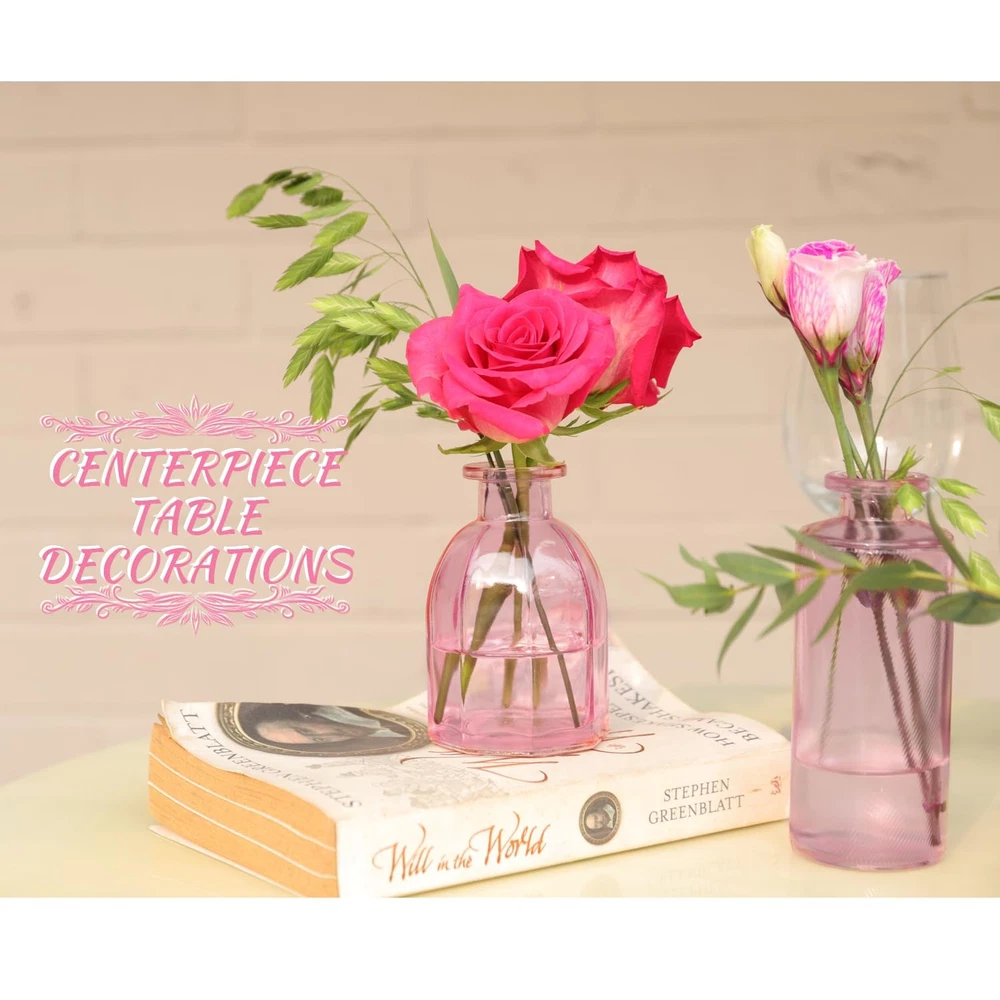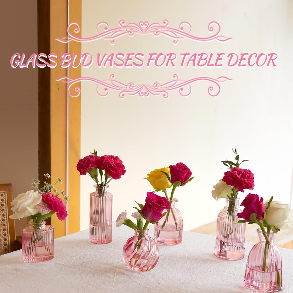 These little vases are absolutely charming! The subtle ribbed texture and soft pink glass add such an elegant touch. I love having a set of 12 with unique shapes; it's perfect for creating beautiful, varied centerpieces. They feel very well-made and have become my favorite decor pieces.