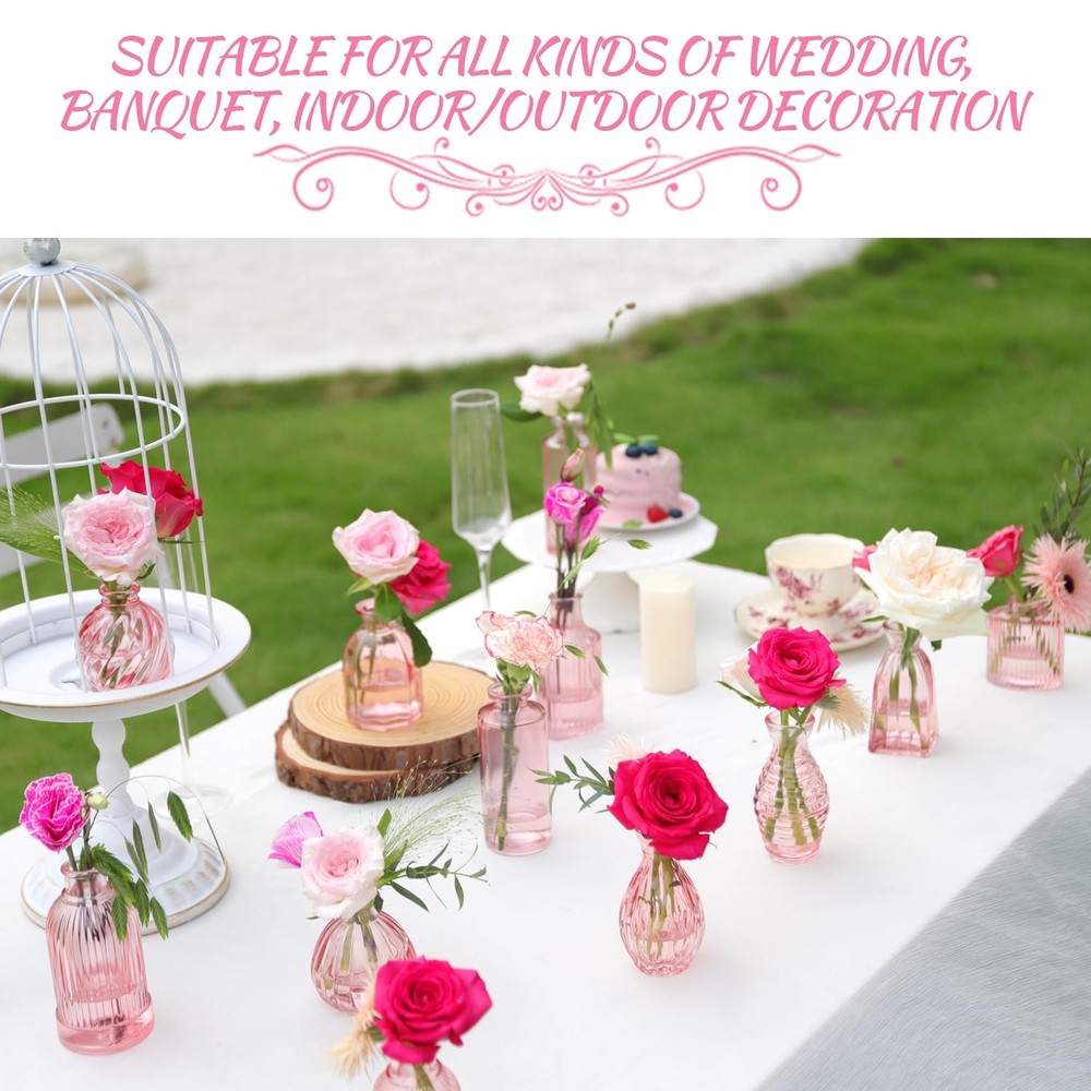 ๐ธ[Pink Glass Vases Set of 12] - The small pink vase in bulk come with 12 different designs of ribbed glass vases for flowers (please refer to the size chart). They are cute bud vases for decor. The pink collections offer a variety for small arrangements, add an extra pretty cute touch to anywhere, especially for wedding centerpieces. ๐ธ[Unique Ribbed Glass Bud Vases] - The pink flower vase is based on the aesthetic concept of minimalistic ribbed simple stripe design: Less is more. The 12 clear vases are differently stripe textured, which can serve for both modern & vintage decor. The ribbed glass vase is great style for wedding centerpieces. ๐ธ[Pink Vase for Wedding Centerpieces] - These vintage glass vases are perfect wedding decoration vases for single flower arrangements, stems, candles or aromatherapy oil. The pink bud vases are great size vases for centerpieces for wedding decor, bridal shower, gender reveal, girls party, birthday, baby shower party table displays and more. ๐ธ[Stunning Glass Vases for Flowers] - These ribbed glass vases are made of non-toxic soda lime glass, thick glass wall and bottom ensure quality and duality. With exquisite glass workmanship, the bud vases are with smooth finish and gentle touching, the mouths are smooth and wide enough for single flower or blooms arrangements. ๐ธ[Breakage-Proof Package] - The vases for centerpieces set of 12 is well packaged in a safe thick custom box, each mini flower vase is wrapped sturdy around thick buffering pearl cotton to avoid breakage in transit. We try best to make sure that the vases your get are all in best condition. In the unlikely event of breakage, please has no hesitate to request for replacements.