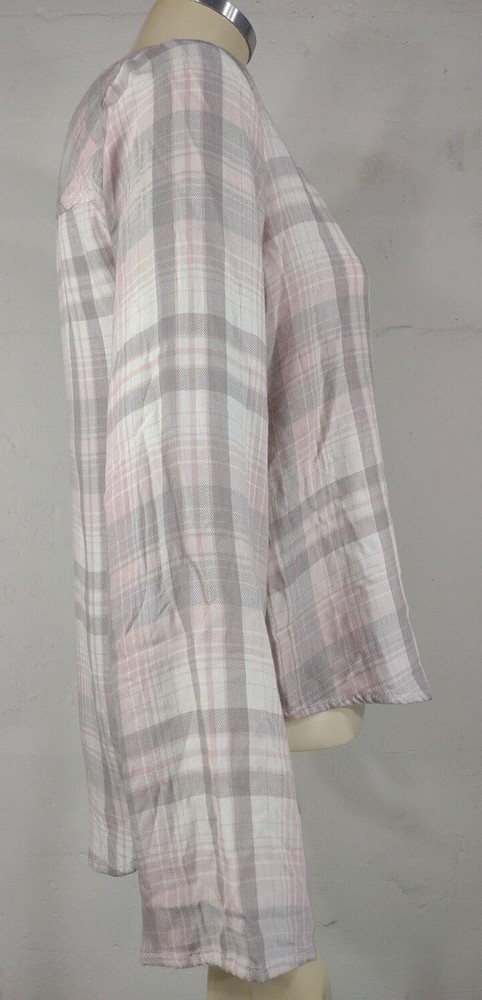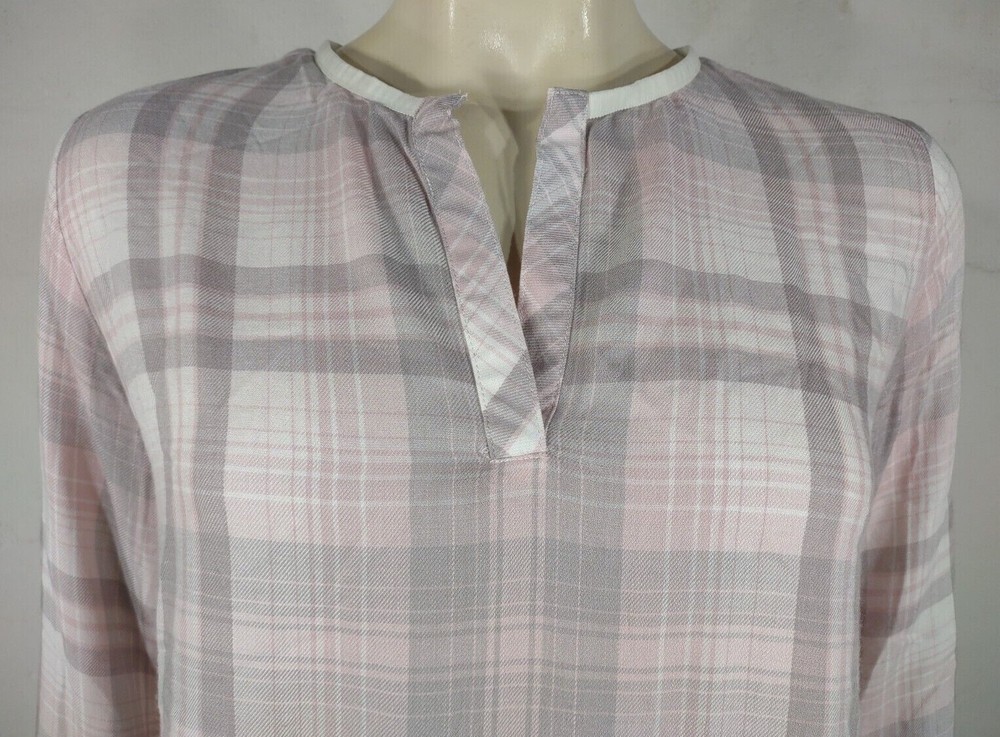 ladies long sleeve blouse Cloth & Stone brand light pink, gray, white size S (Please refer to measurements below) 50% rayon, 50% acrylic Excellent pre-owned condition!! No flaws to speak of. Would make a great gift! Measurements lying flat: Bust (pit to pit): 19 inches. Length (from nape of neck to bottom hem): 25 inches. Policies and Disclosures: RETURNS: Returns are accepted within 30 days of purchase. Buyer is responsible for return shipping. All items from this store come with an identification tag; Item(s) must be returned in original condition with the I.D. tag intact for a refund. SHIPPING: I do combine shipping when multiple items are purchased. In order to provide you with the least expensive price, you will need to send me a message requesting an invoice with combined shipping. CLOTHING: My goal is to sell only the finest quality new and gently used clothing items in my stores, and I strive for 100% satisfaction with every order. While my home is smoke-free, other pre-owned items from different sources cannot be guaranteed as smoke-free or pet-free. It is assumed that you as the buyer will be cleaning the garment once it arrives to you, so unless there is an obvious stain or odor, the clothing has not been laundered. I felt it was best left up to the buyer so no issues would surface regarding detergent allergies, shrinking, etc. Please note that any must or smoke odors can almost always be completely removed by adding 1 cup of distilled white vinegar to your normal wash cycle. I provide measurements on all my clothing items so that you, as the buyer, can make an informed decision about your purchase. Please use that information to compare it with a garment that fits you well to determine if the item will work for you. Seller will not assume responsibility for return postage on items that do not fit. COMMENTS: Please note that every item I sell is described to the best of my knowledge and ability, however, I am a human being, so occasionally I do make mistakes. Colors may vary slightly between screens and monitors. Sizing can vary from brand to brand. If you have any questions about the item(s), free to ask and I will do my best to get back with you in a timely manner. If you have any issues with your purchase, please do not hesitate to contact me prior to leaving negative feedback so we can try to resolve the issue. I am flexible and easy to work with. If you see something you are interested in, feel free to make a reasonable offer! (On a side note: Lowball offers are insulting and will be declined.) Take a moment to browse my other items for sale. I offer a large variety of items, with new items daily, so there’s something for everyone! Thanks so much for taking the time to look and have a wonderful day!
