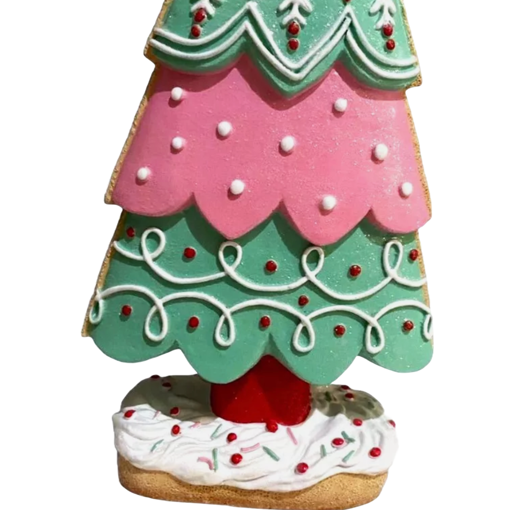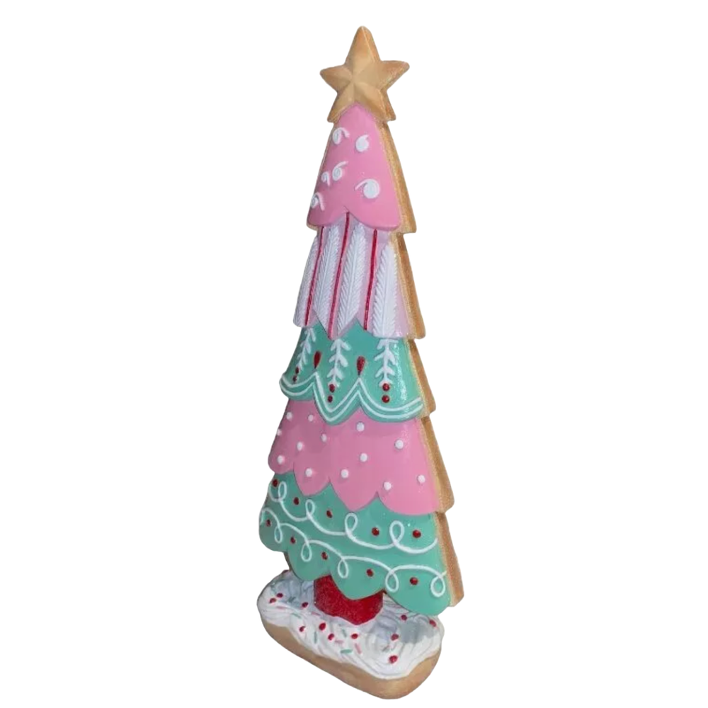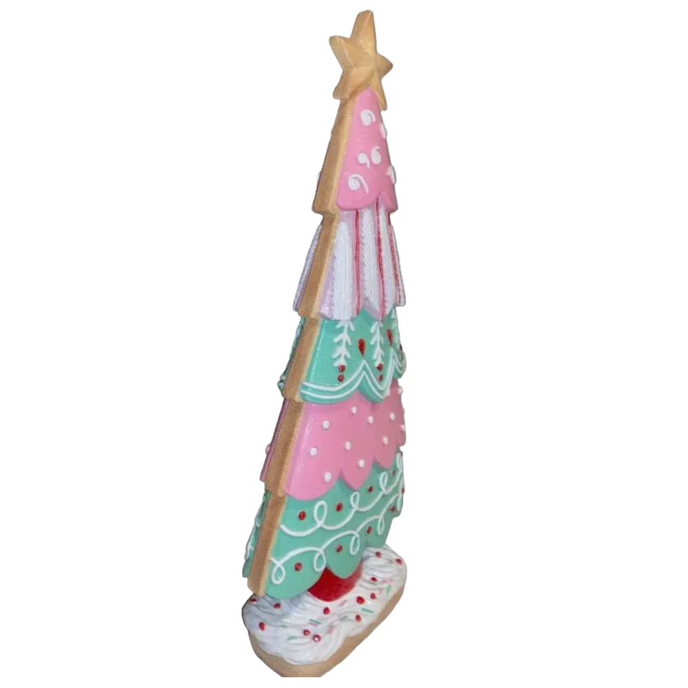 SARASOTA CHRISTMAS CO. NEW Pretty pink and mint green Christmas tree sugary finish table top decoration. Featuring colorful sprinkles and icing trim with a star topper. Measures: 15" high