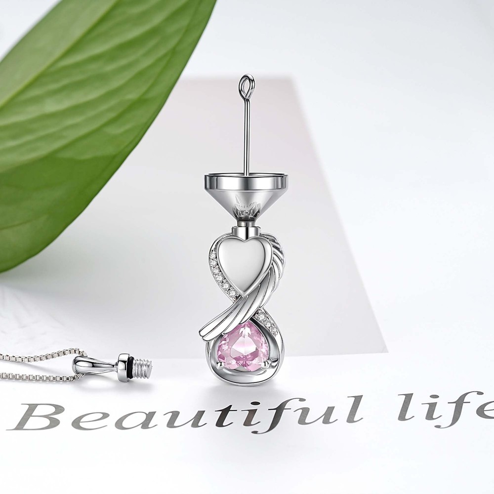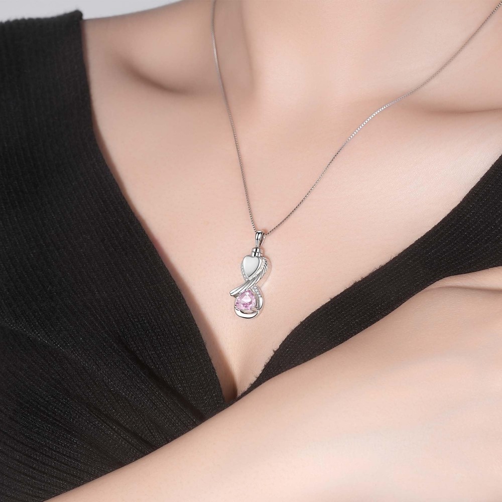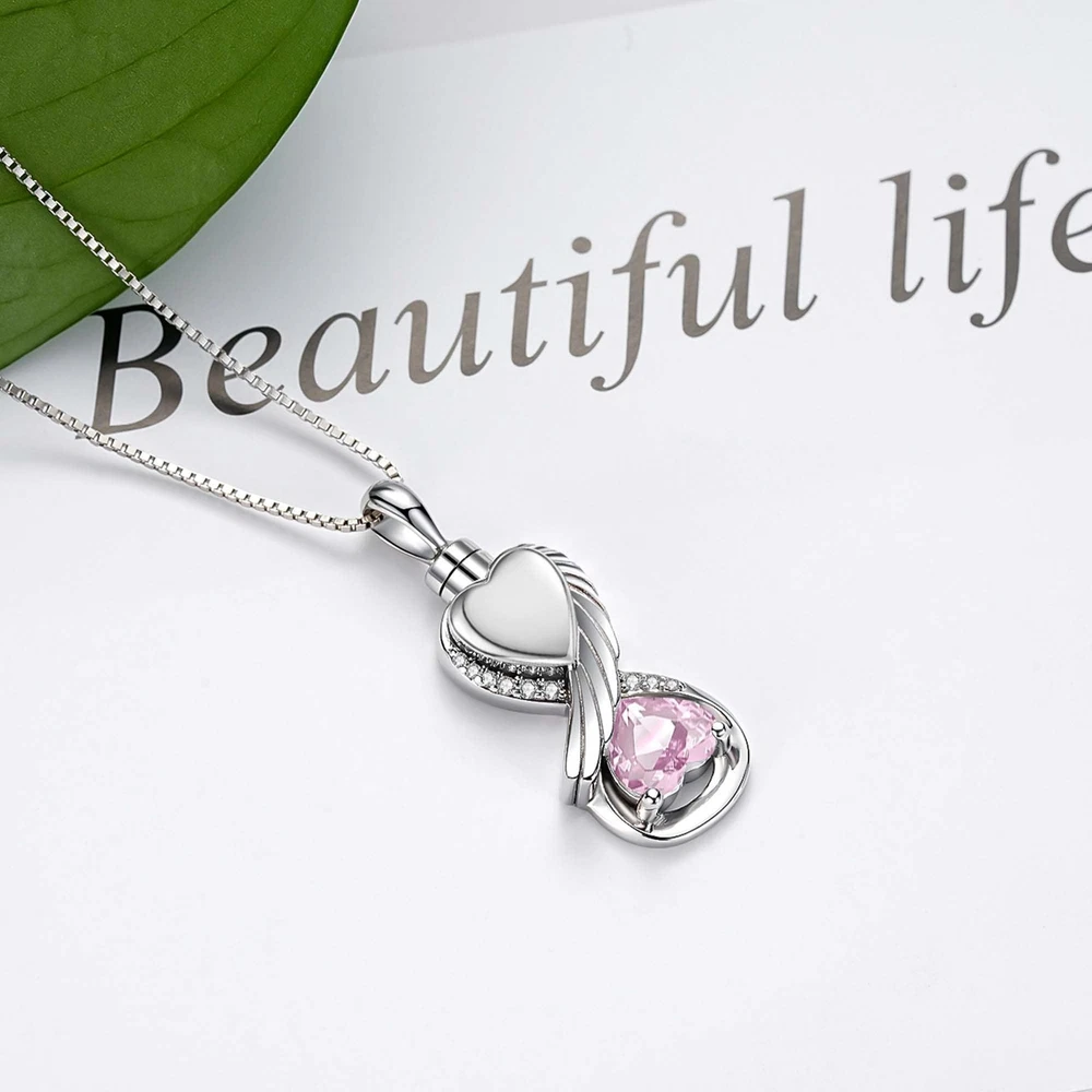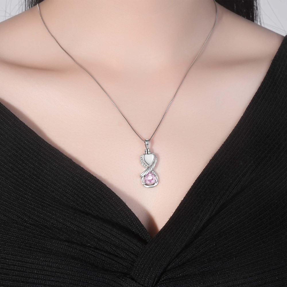 Infinity urn necklaces for ashes for women pink - a unique cremation jewelry bearing endless thoughts and deep love. It's not just a piece of silver jewelry, it's a timeless connection to your loss loved ones, allowing love to transcend life and death and stay with you forever. When you are in the face of the death of a loved one or pet, the kind of deep-rooted yearning and perseverance often makes us yearn for a special way to keep them around. This pink keepsake necklace for ashes is your best choice. It is crafted with exquisite craftsmanship, and the main body of pink stone urn locket necklace is designed in the shape of infinite love, implying that the love between you and the deceased is endless, like the vast universeProduct Details:Material: 925 Sterling SilverPackage Includes:1 x Pink Stone Necklace Urn1 x Polishing Cloth1 x Gift BoxNote:1. Keep away from corrosive chemical, fire and high temperature, hard or sharp objects to avoid any damage.2. Take off necklaces for ashes pink before sleeping, taking a shower and swimming.3. Clean your cremation jewelry for ashes mother pink in Polishing Cloth High Quality Urn Necklace - The infinity wing heart ashes necklace is made of shiny cubic zircon and hypoallergenic sterling silver, which is nickel-free, lead-free, cadmium-free and hypoallergenic, no harm to skin and suitable for long-term wear on any occasion. It will never rust, fade, corrode or break. Screws and rubber gasket keep the cremation jewelry pendant tightly sealed and protect the ashes well. Just like the memories and love can stand the test of time. Memorial Urn Necklace - The infinity wing heart necklace for ashes represents endless forever love and guard, it is by a beautiful way to commemorate ones love and keep precious memories stay forever. The sadness that you have gone will never be forgotten, but you will be with me for the rest of my life. Cremation Jewelry - Eternal memorial cremation necklace for keeping the memory forever to cherish loved ones, it is an ideal gift for mom, dad, daughter, son, sister, brother, wife, husband, grandma, grandpa, granddaughter, uncle and best friend or other family numbers during anniversary, Valentine's Day, Mother's Day, Easter, Thanksgiving, and Christmas! We hope this necklace can bring you comfort. When you wear it close to your heart, your lost lovers always beside you in another way. Infinity Pendant Size: 0.95inches*0.50inches. Box Chain length: 18inches+2inches extension.you can adjust the length 18-20 inches you like. Besides it comes in a fine gift box with silver polishing cloth and a funnel filler kit,easily fill the ashes to assist you to keep your loved ones memories. After Sale Service - If you have any question during the shopping jewelry store process, you can contact us until you are satisfied. We aim to create genuine, delicate, beautiful fashion silver jewelry. Wish you a pretty and happy life!