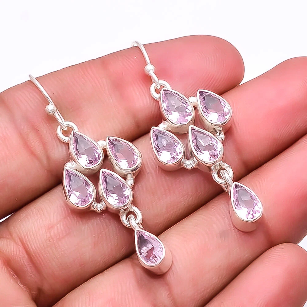 Theme Beauty Main Stone Depth As Seen in Picture Main Stone Length As Seen in Picture Main Stone Width As Seen in Picture Seller Warranty Yes Shape As Seen in Picture SKU E_8063_359_4 Main Stone Size 8X5 Mm Antique Yes Handmade Yes Type Earring Style Drop/Dangle Metal Sterling Silver Metal Purity 925 Parts Per 1000 Base Metal Sterling Silver Total Carat Weight 41 Ctw Main Stone Kunzite Main Stone Creation Lab-Created Main Stone Shape Pear Main Stone Color Pink Main Stone Treatment Lab-Created Material Gemstone, Stone Number of Gemstones 10 Item Length 1.76" Features Engraved, Nickel-Free, Handcrafted Ear Area Lobe Brand Unbranded Country/Region of Manufacture India Country of Origin United States Color As Seen in Picture Closure Wire Hook Diamond Clarity Grade Not Applicable Number of Diamonds As Seen in Picture Item Diameter As Seen in Picture Diamond Color Grade Not Applicable Customized No Colored Diamond Intensity Not Applicable Certification 100% Genuine Guaranteed Setting Style Bezel Occasion Christmas, Birthday, Anniversary, Engagement, Wedding, Valen Shipping & Handling - Charge - 1st item-5.90 And Additional item-1.90 Handling Time - 1 Days . Delivery Time - 2 TO 3 DAYS. Shipping Service - USPS First Class Package 2 -3 Days. Returns - 1.We offer a 100% Money Back Guarantee minus shipping for 30 days after receiving the Item / item's. 2..The item must not be altered or damaged in any way shape or form. 3.Upon receiving these items your payment will be refunded. 4.Email us for return instructions before sending merchandise back. 5.Please allow up to 1 business day for all returns to receive credit. 6.Sizing does not affect the return policy. Payment - We accept PayPal for Payment ,should made with in 14 days once buying or winning done , in case of late information expected .