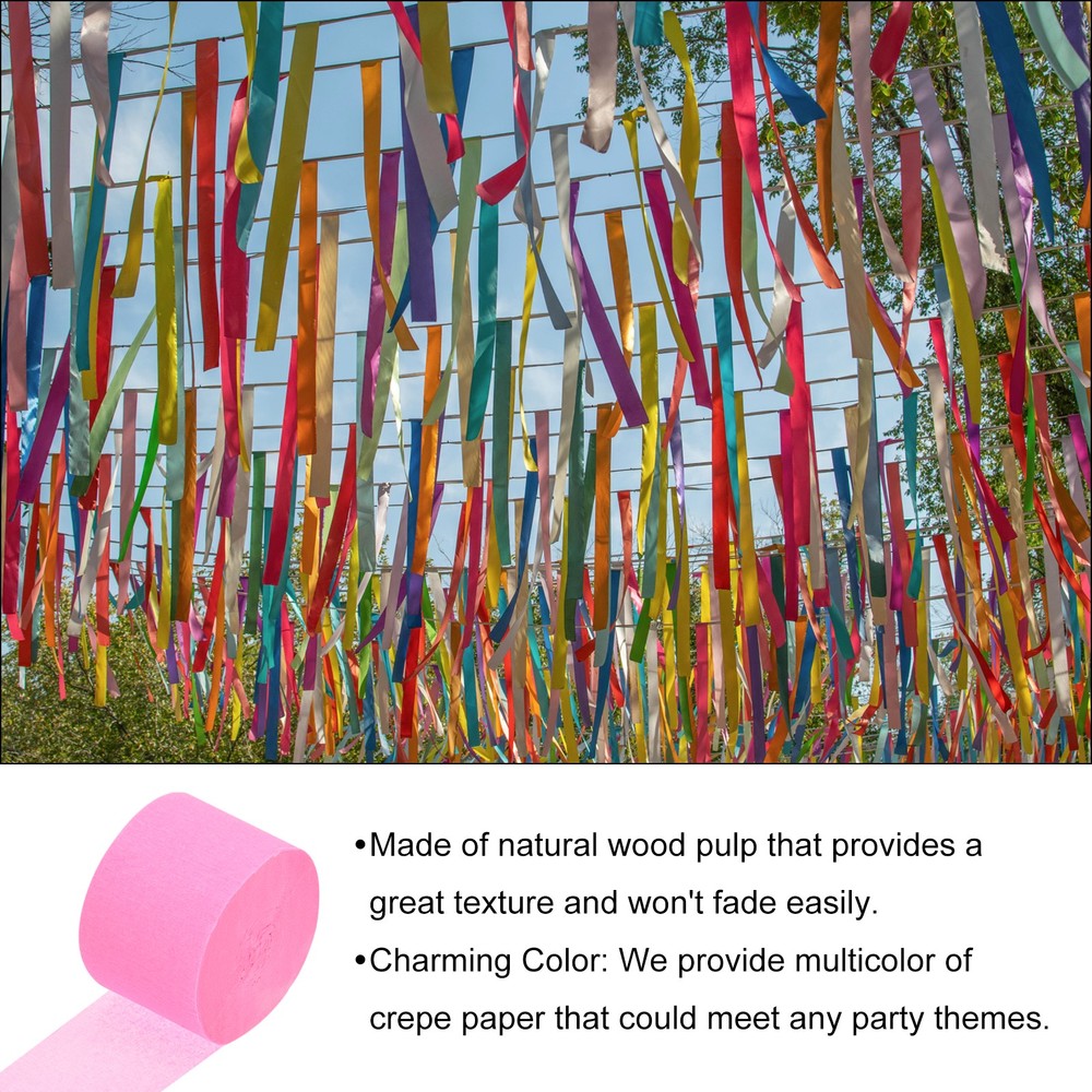 Document About the product:Crepe paper streamers are a versatile party decoration that can add a touch of color to any decorative party, including birthday parties, weddings, Christmas, classrooms, office graduation celebrations and more.Good choice for you:Material:Crepe Paper Streamer Rolls are made from wood pulp for a natural textured effect that won't fade easily, our party streamers are designed for easy hanging and clean removal, perfect for any venue.Durability:Each roll of Birthday streamers is carefully crafted and durable, can be reused for multiple events, and can make your party more eye-catching when decorating.Diverse Color: We offer a variety of colors or styles of cream paper streamers to choose from. You can choose the color you want, or mix and match different colors to meet your party theme needs.Specification:Streamers Party DecorationsColor: PinkMaterial: Paper PulpSize: 4.5 cm x 25 m / 1.8 Inch x 82 Ft (W x L)In the package of: 4 Roll x Crepe Paper StreamerEasy to use:You can simply hang Crepe Paper Streamers on the ceiling, doorway, window or twist the paper streamers together to form a spiral shape as a background for party celebrations, you can also use them to make tissue flowers, paper pompoms or tear them into pieces as confetti to decorate your birthday party. You can use your imagination to create your own style and create a romantic atmosphere.Tips: Please confirm the correct size before ordering. Pink Paper Streamers - 1.8 Inch x 82 Feet / 4 Roll About the product: Crepe paper streamers are a versatile party decoration that can add a touch of color to any decorative party, including birthday parties, weddings, Christmas, classrooms, office graduation celebrations and more. Good choice for you: Material:Crepe Paper Streamer Rolls are made from wood pulp for a natural textured effect that won't fade easily, our party streamers are designed for easy hanging and clean removal, perfect for any venue. Durability:Each roll of Birthday streamers is carefully crafted and durable, can be reused for multiple events, and can make your party more eye-catching when decorating. Diverse Color: We offer a variety of colors or styles of cream paper streamers to choose from. You can choose the color you want, or mix and match different colors to meet your party theme needs. Specification: Streamers Party Decorations Color: Pink Material: Paper Pulp Size: 4.5 cm x 25 m / 1.8 Inch x 82 Ft (W x L) In the package of: 4 Roll x Crepe Paper Streamer Easy to use: You can simply hang Crepe Paper Streamers on the ceiling, doorway, window or twist the paper streamers together to form a spiral shape as a background for party celebrations, you can also use them to make tissue flowers, paper pompoms or tear them into pieces as confetti to decorate your birthday party. You can use your imagination to create your own style and create a romantic atmosphere. Tips: Please confirm the correct size before ordering. Hot Item Payment 1.We accept eBay payment . 2.Payment must be received within 7 business days of auction closing. Shipping 1.We ship to your eBay or Paypal address. Please make sure your eBay and Paypal address is correct before you pay. 2.Items will be shipped within 1-3 business day when we received payment. 3.Delivery time depends on destination and other factors. Description Policy Pink Paper Streamers - 1.8 Inch x 82 Feet / 4 Roll About the product: Crepe paper streamers are a versatile party decoration that can add a touch of color to any decorative party, including birthday parties, weddings, Christmas, classrooms, office graduation celebrations and more. Good choice for you: Material:Crepe Paper Streamer Rolls are made from wood pulp for a natural textured effect that won't fade easily, our party streamers are designed for easy hanging and clean removal, perfect for any venue. Durability:Each roll of Birthday streamers is carefully crafted and durable, can be reused for multiple events, and can make your party more eye-catching when decorating. Diverse Color: We offer a variety of colors or styles of cream paper streamers to choose from. You can choose the color you want, or mix and match different colors to meet your party theme needs. Specification: Streamers Party Decorations Color: Pink Material: Paper Pulp Size: 4.5 cm x 25 m / 1.8 Inch x 82 Ft (W x L) In the package of: 4 Roll x Crepe Paper Streamer Easy to use: You can simply hang Crepe Paper Streamers on the ceiling, doorway, window or twist the paper streamers together to form a spiral shape as a background for party celebrations, you can also use them to make tissue flowers, paper pompoms or tear them into pieces as confetti to decorate your birthday party. You can use your imagination to create your own style and create a romantic atmosphere. Tips: Please confirm the correct size before ordering. Hot Item Payment 1.We accept eBay payment . 2.Payment must be received within 7 business days of auction closing. Shipping 1.We ship to your eBay or Paypal address. Please make sure your eBay and Paypal address is correct before you pay. 2.Items will be shipped within 1-3 business day when we received payment. 3.Delivery time depends on destination and other factors.