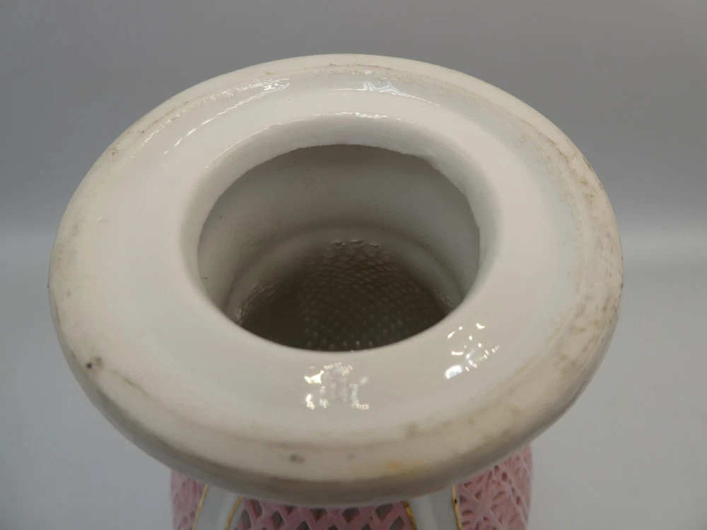 PIERCED PINK PORCELAIN CONTINENTAL FLORAL CANDLE STICK HOLDER IN GOOD CONDITION SEE PHOTOS FOR GUIDE TO CONDITION 20 CM HIGH I AM LISTING SOME OTHER PIECES I can combine for postage. CHECK MY OTHER LISTINGS FOR MORE