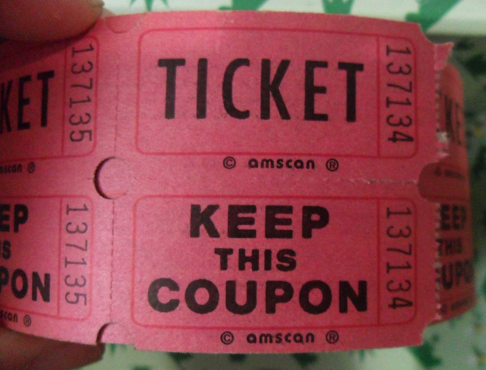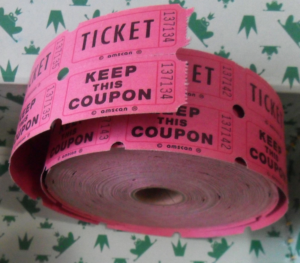 Here is a Pink / Red Double TICKET "Keep This Coupon" ROLL, Amscan, Almost Complete or 2000. A brand new Roll has 2000 tickets, but this one has been opened and started, so there are less than 2000 tickets. I don't know how many, because to know, I would have to unroll the whole thing, I can just give you the dimension of this roll: Size : 4 3/4" across the roll, each double ticket is 2" long and 2" wide. This Roll is rather heavy. I have no idea what are these tickets for, but I know that they used to be sold in party's stores. You can also use these tickets on collages, or scrapbooks, junk books, journals... In Art, more generally... Condition : The roll has been opened and started so the roll is not quite complete, but still rather big. One side of the roll is slightly dusty on one side, on the edges of the tickets (please, check the last photo), but once detached from the roll, it is absolutely not visible on the tickets. Overall great used condition! Please, check the photos as well.