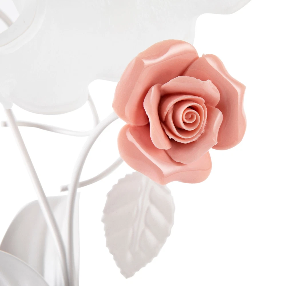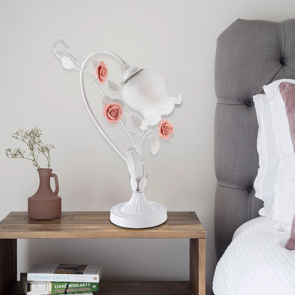 Pink Roses Flower Table Lamp Bedside Lamp Floral Glass Desk Lamp LED E26 US