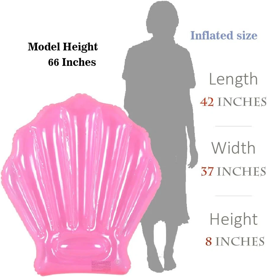 Seashell Pool Float 2 Pack, Summer Fun Inflatable Seashell Float for Kids, Pink Seashell Pool or Beach Toys of 42 Inches Designed with transparent pink seashell: Such as enjoying the summer water fun together in the fairy tale world of the mermaid. Suitable for kids: These seashell pool floats are perfect for kids pool float or mermaid party decoration, can also be used for swimming aids. 2 packs can be enjoyed with friends for double fun. A variety of scenes: You can enjoy the mermaid party or enjoy the summer water fun in the pool with the seashell rafts. Sharing the fun: Welcome to show us your fun with this inflatable beach toy on social media, we are happy to see your share, and sometimes there is a surprise. @Xflated Problem Promise: This product includes a repair patch. Even if the inflatable pool float accidentally breaks a hole, it can extend your fun time. Or we will replace it for free. About the Single Valve: The valve is designed to avoid problems that might occur if the air runs out immediately after opening the valve. There is a thin gap inside the valve that can be inflated with a special air pump; if you blow by mouth, you need to squeeze the valve to make the gap wider so that it can be easily filled with air. Product Description Color May Vary 100% physical photography. However, many factors might affect the color of the picture. Please in kind prevail. Package Include: 2× Seashell Pool Float 2× Repair Patch Kit 2× Poly Bag 1x Box Due to the characteristics of translucent materials, it will affect the color performance with the change of ambient light. Mermaid birthday party supplies How can a mermaid birthday party be less decorated with shells? The transparent pink seashell design makes your party colorful and let her have an unforgettable birthday party. Enjoy your time of learning to swim Bring your kids and shell, enjoy the sun and the beach, and have an unforgettable and passionate summer. At this moment, the seashell inflatable float brings you a different summer fun experience with your family. The shell float is very suitable for kids. You can enjoy the mermaid party or enjoy the summer water fun in the pool with the seashell rafts. Let our family have summer fun for the swimming pool parties with this seashell pool float! Suitable for kids The inflated size is 42 inches long, 37 inches wide and 8 inches high. (Model height: 66 inches) These seashell pool floats are perfect for kids pool float or mermaid party decoration, can also be used for swimming aids. 2 packs can be enjoyed with friends for double fun. Designed with transparent pink seashell Such as enjoying the summer water fun together in the fairy tale world of the mermaid. Easy and Fast to Inflate and Deflate There is a safety valve. Easy to inflate and deflate the shell pool float. Notice About the Pool Floats * Do not leave the child unattended while the device is in use. * Do not use high-pressure air to inflate. Do not over inflate. * This is not a life saving device. Patch Using The special circumstances need to use the patch Step1: Clean repair area thoroughly Step2: Press patch firmly over puncture Step3: Do not inflate for 30 minutes Have a great day! Part Number XF009 Product Dimensions 42"L x 42"W Item Dimensions LxWxH 42 x 37 x 8 inches Personal Flotation Device Type Buoyancy Aid Color Seashell Material Vinyl Package Weight 1.48 Kilograms Item Weight 3.2 Pounds Age Range (Description) Kid Item Form Seashell Weight Limit 1E+2 Pounds Item Package Dimensions L x W x H 10.83 x 9.45 x 3.74 inches 9.45 inches x 10.83 inches x 3.74 inches. Weight: 3.2 lb Shipping from the USA All of our products are shipped from the USA, ensuring quick delivery to your destination. Payment We offer the following payment methods: PayPal, credit card, bank transfer, and eBay's secure payment system. Free Shipping & Free Returns Shipping within the USA is FREE. Additionally, any return is absolutely free for you. Risk-Free Purchase You have the option to return an item within 30 days without any justification. We cover the return shipping costs! Fast Shipping We ship immediately upon receipt of payment. Generally, the package is delivered within 2-3 days in the USA. If it takes longer, we will contact you. Quality and Costs Made in Europe, USA, China No customs fees or additional charges Total satisfaction guarantee Invoice with declared VAT available upon request in .pdf format Feedback Your feedback is very important to us. After you pay for your purchase, you will automatically receive positive feedback from us.