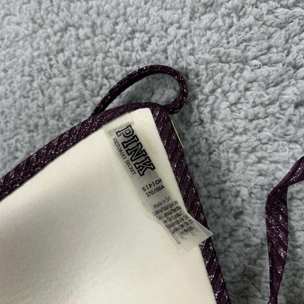Swim Top Style: Bikini Top Material: Polyester Blend Department: Womens Vintage: No Brand: Pink Size: S Garment Care: Machine Washable Color: Brown Type: Top Pattern: Solid Size Type: Regular
