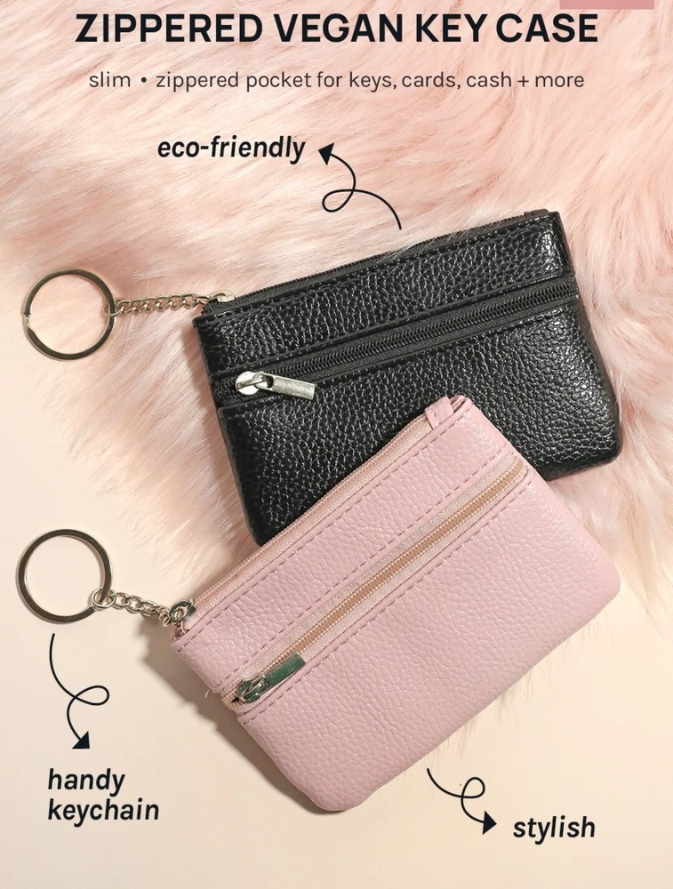 Vegan Leather Coin Purse with Keychain in Pink NWT Vegan Leather Coin Purse with Keychain in Pink NWT •Lightweight •Slim •Keychain •Holds coins + cards NWT #coinpurse #Keychain #veganleather #pink