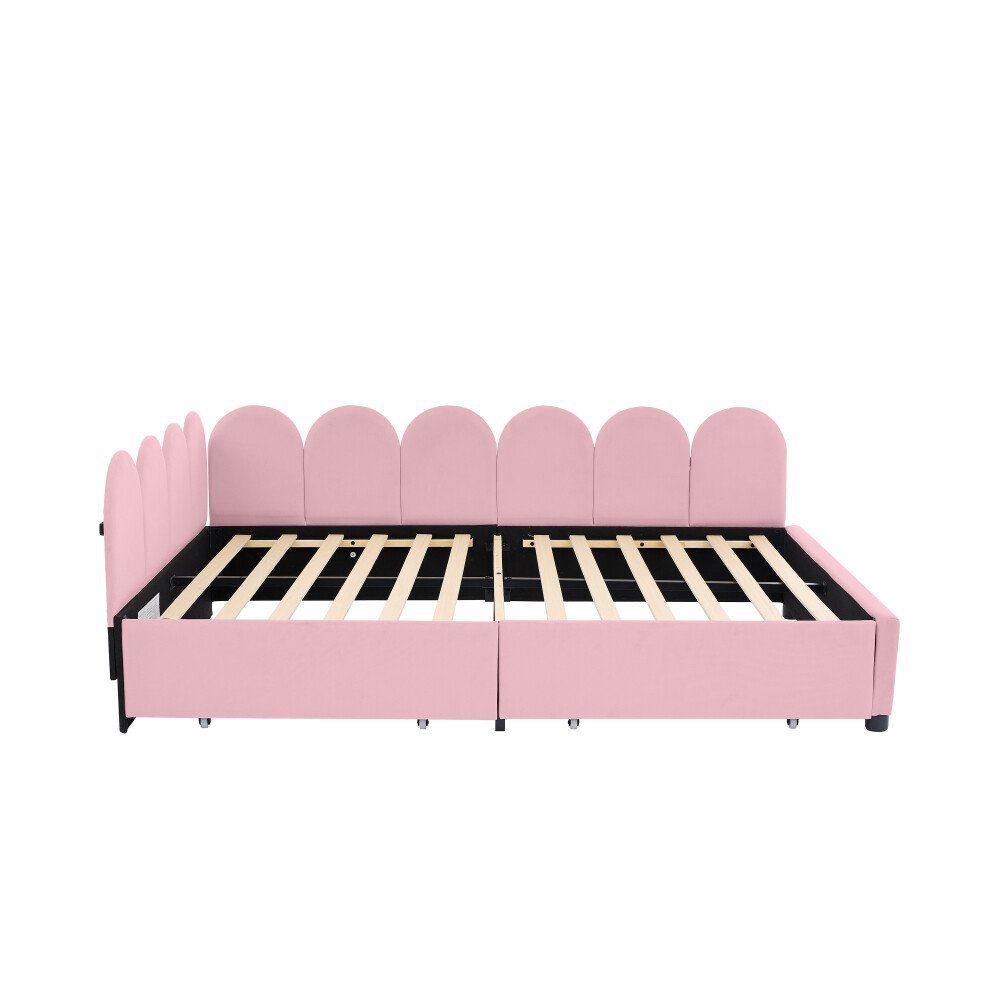 Pink Velvet Upholstered Full Sofabed with Headboard & 2 Drawers