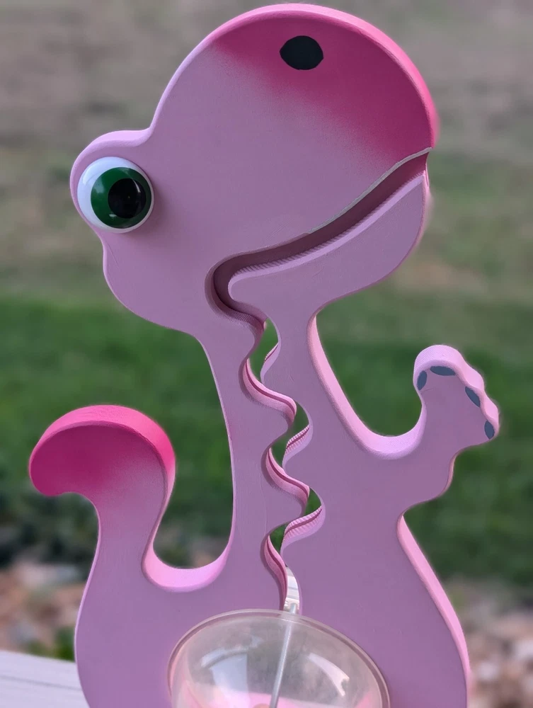 dinosaur-shaped bank. Stands on the floor. This is probably the coolest piggy bank! You put the coin in its mouth and watch It go down in her belly.