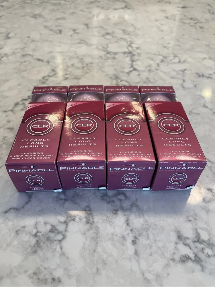 The Pinnacle CLR Golf Balls are Tour Preferred balls designed for control on the golf course. This pack includes 4 packs of 3 balls each, totaling 12 balls, in a Breast Cancer Pink Pearlescent color. The balls are suitable for PGA events and are a stylish choice for golfers looking to support breast cancer awareness while playing.