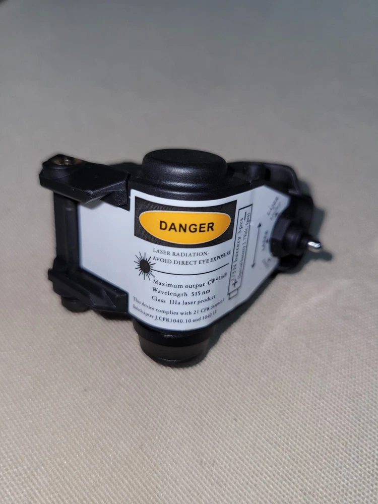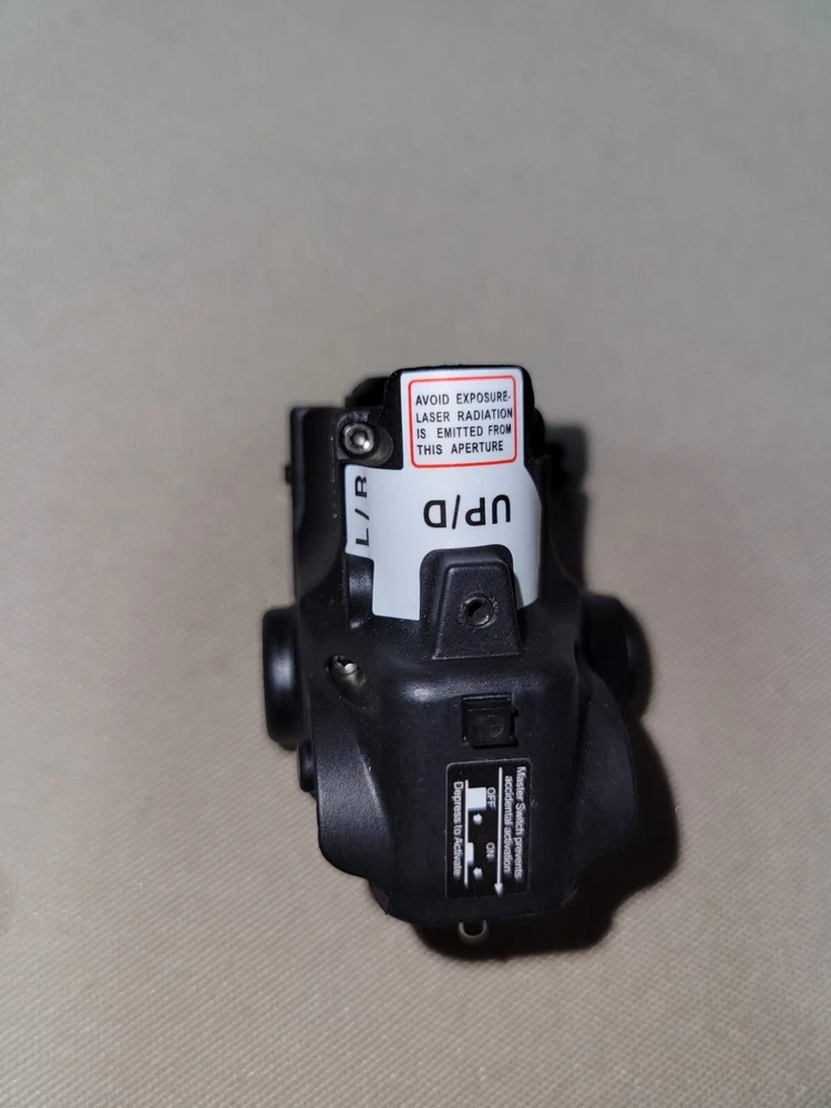 Open box, never used, NEW! SEE PICTURES FOR EXACT ITEM CONDITION Specifications Press the power switch to turn on and off the device. Use one of the two ambidextrous buttons on the side to operate the on/off switch of the laser. Material: Fiber Reinforced Nylon Color: Black Usage: Outdoor sports; lighting Dimensions: 2.0*1.8*1.5in Net weight: 1.6oz/ 46g Accessories: 3 batteries; hollow ring (for you to open the battery cap) Laser Class: ClassIIIa Laser Power less than 5mW Laser Runtime: 3 hour 30 minutes; Light Runtime: 1 hour 30 minutes; Laser & Light Runtime: 30 minutes