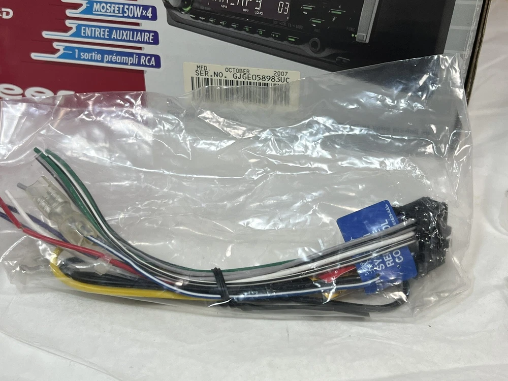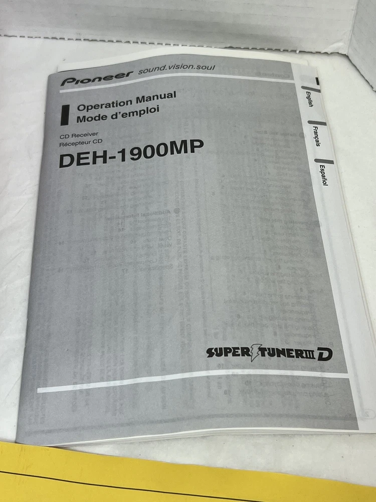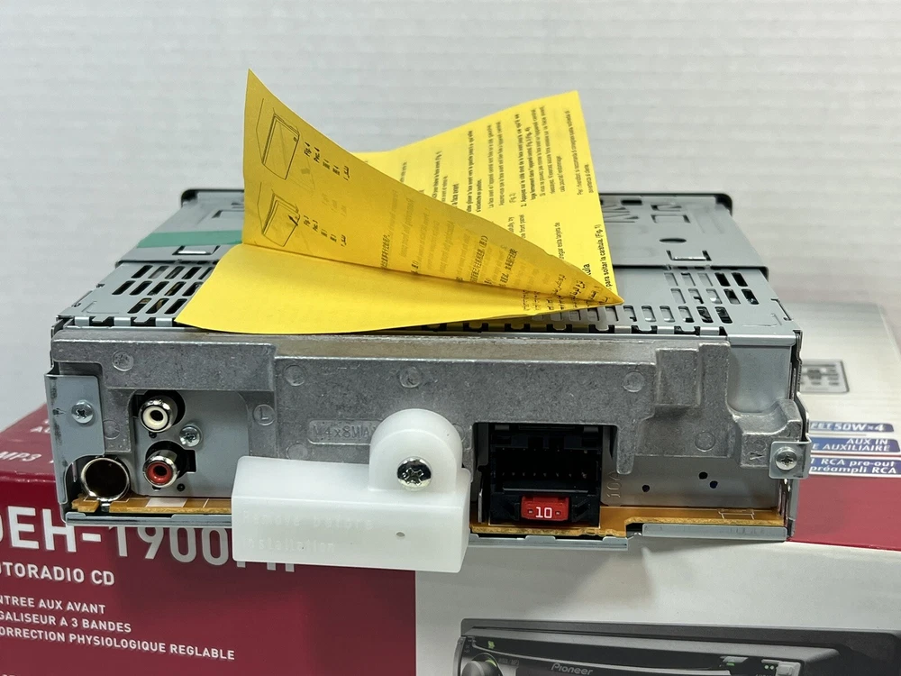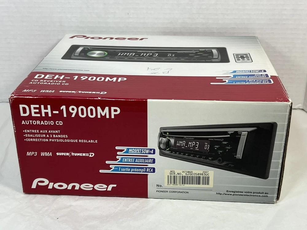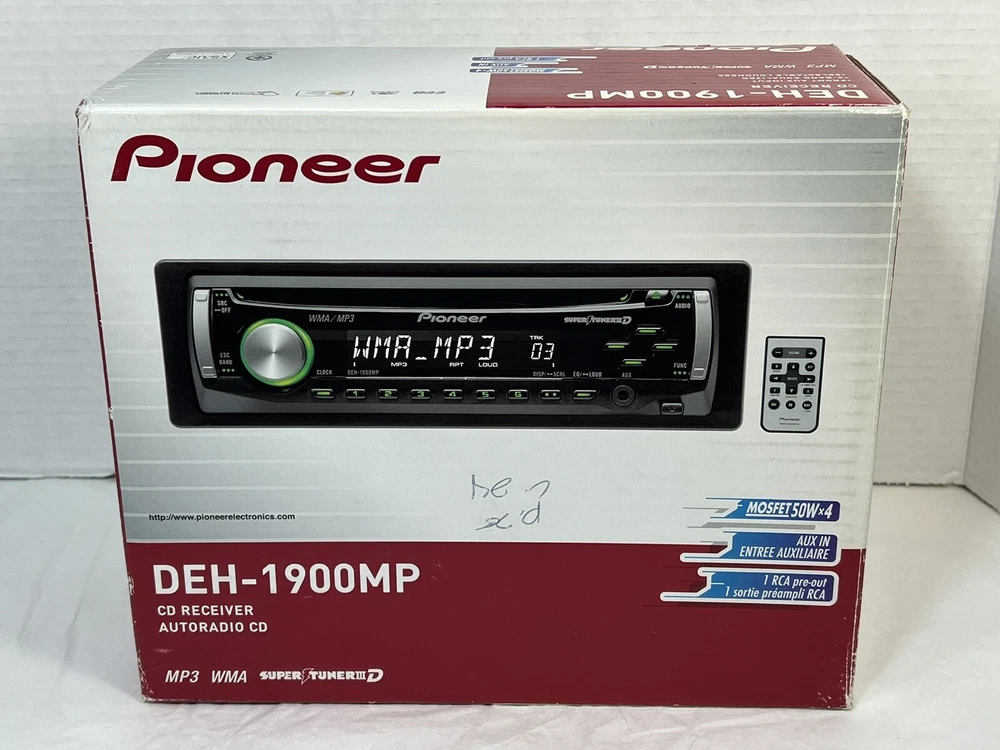 Pioneer DEH-1900MP CD Player In Dash Receiver w/Remote - NEW - UNTESTED I am not the original owner and I am unaware what its working status is. It looks to never have been used. The remote is included, the battery has never been installed. It comes with the one wire harness that plugs into the rear port. Also included is a sealed bag of screws/parts. Comes with the manual and install instructions. The box does not have the foam insert. Please review all the pictures for what is included. If there are parts missing I am unaware of what they are. This unit is being untested and as is. Please let me know if you have any questions.