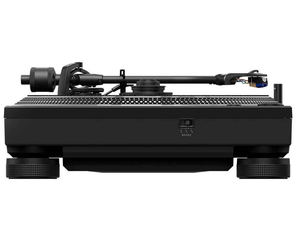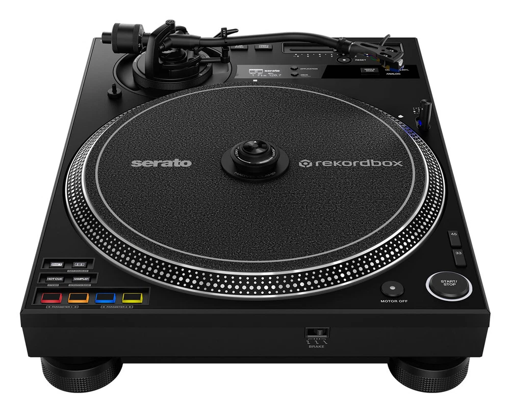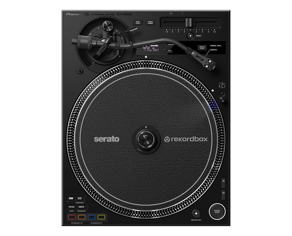 ProAudioStar DJ GEAR INSTRUMENT GEAR LIVE SOUND RECORDING MICROPHONES HEADPHONES ACCESSORIES SOFTWARE LIGHTING BUNDLES Authorized Dealer Pioneer DJ PLX-CRSS12 Hybrid Analog/Digital Direct Drive Turntable +DVS Control Hybrid Analog/Digital Professional Direct Drive Turntable with DVS Control - Open Box - Description The D'Addario Screeching Halt Soundhole Plug allows you to play your electric acoustic at far greater volume, without unwanted feedback or howling. The tapered design allows for a great fit in most Soundholes, while the inert material is safe for your guitar’s finish. Simply place the Screeching Halt into your acoustics' Soundhole and enjoy a feedback-free performance. Tone-arm-free DVS control eliminates skipping in digital playback No matter how hard you scratch, you’ll never experience needle skipping when you use the PLX-CRSS12 in Digital Vinyl mode, thanks to the tone-arm-free system. The new MAGVEL CLAMP holds a record firmly in place when you touch it, enabling it to directly control the digital music file, giving you the true feeling of vinyl with no need to use the tone arm. When playing analog records, the experience will be just like using the popular PLX-1000 deck. Feeling adjustment to suit your style You can quickly adjust the record's "weight" with the dial on top of the MAGVEL CLAMP. This means you can effortlessly continue your performance without the hassle of changing slip mats or slip sheets. Customizable torque level It's easy to change the turntable rotation torque level in the utility settings to suit your preference. You can choose from "High" for quick startup when you press PLAY, "Low" for the traditional torque speed that many DJs are familiar with, and "Mid" for a balance between the two. Adjustable stopping speed Use the switch on the front of the deck to adjust the time it takes for the turntable to stop when you press STOP. The "Min" is sharp. The "Mid" uses a traditional stopping speed that's familiar to DJs. And the "Max" creates the longest stopping speed for a gradual and dramatic finish to a track or performance. Performance Pads for accurate and rapid control The PLX-CRSS12 inherits classic turntable layout elements, but a new addition is the 4 built-in MIDI-mappable Performance Pads which put your favorite features at your fingertips. They’re right where you need them – just below the platter – so you can fire off Hot Cues and samples quicker than ever, which comes in handy even more if you’re performing on a mixer that has no pads. There’s native support for various pad modes (see below), and a dedicated button enables you to switch control from pads 1-4 to 5-8. The pads are MIDI mappable too, so you can assign them to other features. OLED display for quick confirmation of track information The built-in OLED display also helps you focus on the deck. You can keep an eye on the tempo range and key when Step Pitching and, when you connect the PLX-CRSS12 via USB to your PC/Mac running DJ software, you can reference BPM, key, deck number information. The display also gives you quick access to the utility settings – all of which reduces the need to break concentration and look at your laptop or mixer during a performance. High-quality sound reproduction of analog records, evolved from the PLX-1000 Let your audience enjoy your music the way it was intended to be heard. The PLX-CRSS12 has been carefully built to improve on the sound quality of the PLX-1000 professional DJ turntable, which is highly acclaimed for its accurate sound reproduction. Switching power supply A switching power supply is used to eliminate transformer power supply vibration and flux leakage, and unwanted noise is suppressed, resulting in high-resolution sound quality. High-mass die-cast zinc As with the PLX-1000, the upper part of the chassis is made of high-mass die-cast zinc and the lower part is made of 8 mm thick resin to optimize the chassis structure and vibration-damping materials. Machined gold-plated RCA terminals The RCA terminals are made of machined gold-plated parts like those on the PLX-1000, and the phono signal is directly transmitted through a stable connection with the plug to reproduce the sound of analog records with high-quality audio. Robust and elegant design in matte black color The PLX-CRSS12 has a matte black color scheme, with special coatings applied to the tone arm and other metal parts, plus carefully crafted details that give it a robust and elegant appearance. Serato DJ Pro and rekordbox compatibility The PLX-CRSS12 is compatible with Serato DJ Pro and rekordbox. By connecting this unit to a PC/Mac with DJ software installed, and to a mixer that supports the DVS function of the respective DJ software, you can start playing in Digital Vinyl mode and use the Performance Pads. Features/Specs Turntables Drive Method : Servo-type direct drive Platter : Aluminium, die-casting diameter: 332 mm Motor : 3-phase, brushless DC motor Braking System : Electronic brake Rotation Speed : 33⅓ rpm, 45 rpm Rotation Adjustment Range : ±8, ±16, ±50 % Wow and Flutter : 0.15% or less WRMS (JIS WTD) Signal-to-Noise Ratio : 65 dB (DIN-B) Starting Torque High: 0.45 N·m (4.5 kgf·cm) or more Mid: 0.32 N·m (3.2 kgf·cm) Low: 0.2 N·m (2.0 kgf·cm) Start Time 3 sec (at 33⅓ rpm) Brake Time Max: 3.5 seconds Mid: 1.0 seconds Min: 0.5 seconds or less Tone Arm Overhang : 15 mm Effective Length : 230 mm Tracking Error : Within 3° Height Adjustment Range : 6 mm Stylus Pressure Variable Range : 0-4 g (1 scale 0.1 g) Arm Type Universal type S-shape tone arm Gimbal-supported type bearing structure Static balance type Terminals USB : 1 USB C port Outputs : 1 PHONO(RCA) We are authorized dealers for all these brands. Click a logo to see our listings. ProAudioStar is also not responsible for any taxes, local duties, or fees outside of the USA and those are not included in the sale price or ship charge. If an item is refused by the buyer, ship costs to and fr