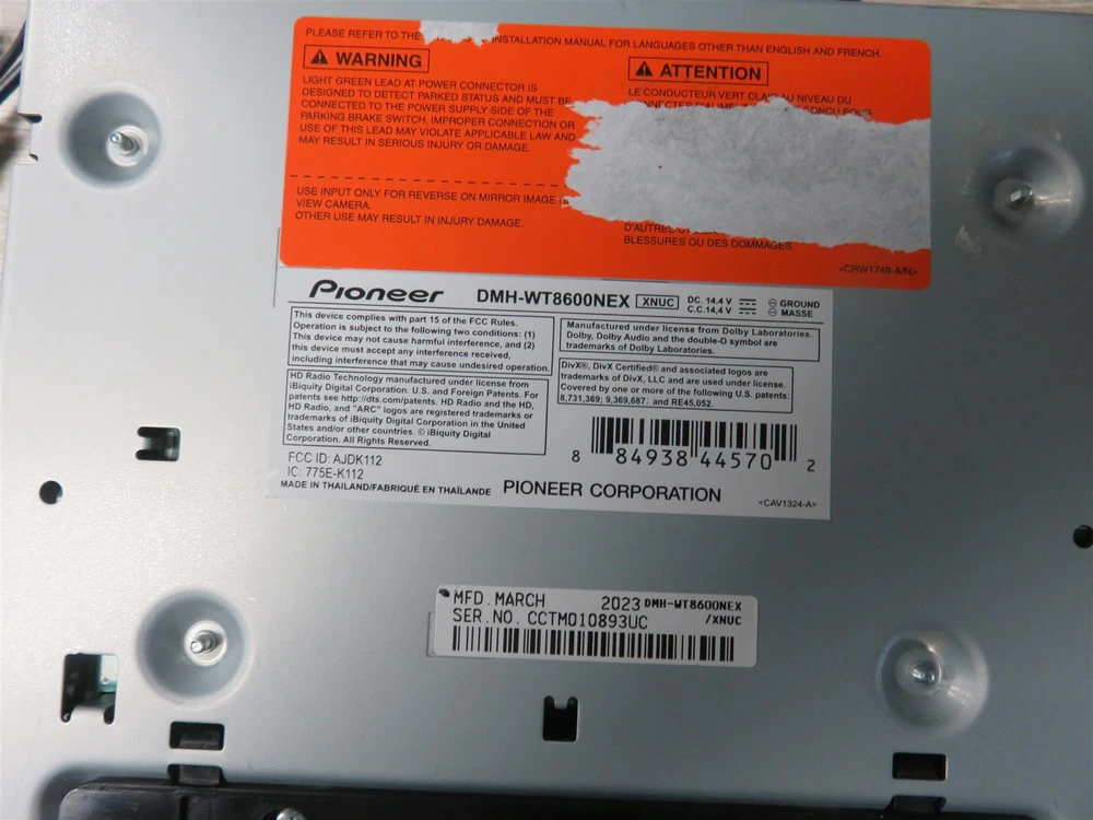 Brand: Pioneer gtin13: Does Not Apply Seller Notes: “USED, Good Working, (manuals or any other Accessories Are not included).” MPN: DMH-WT8600NEX UPC: Does Not Apply